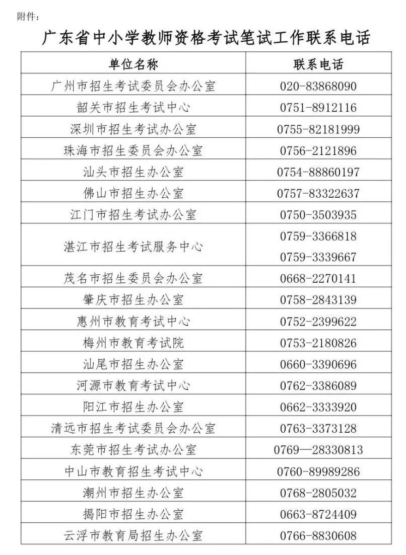 广东省2021下半年教师资格证笔试退费申请机构名单(附电话)