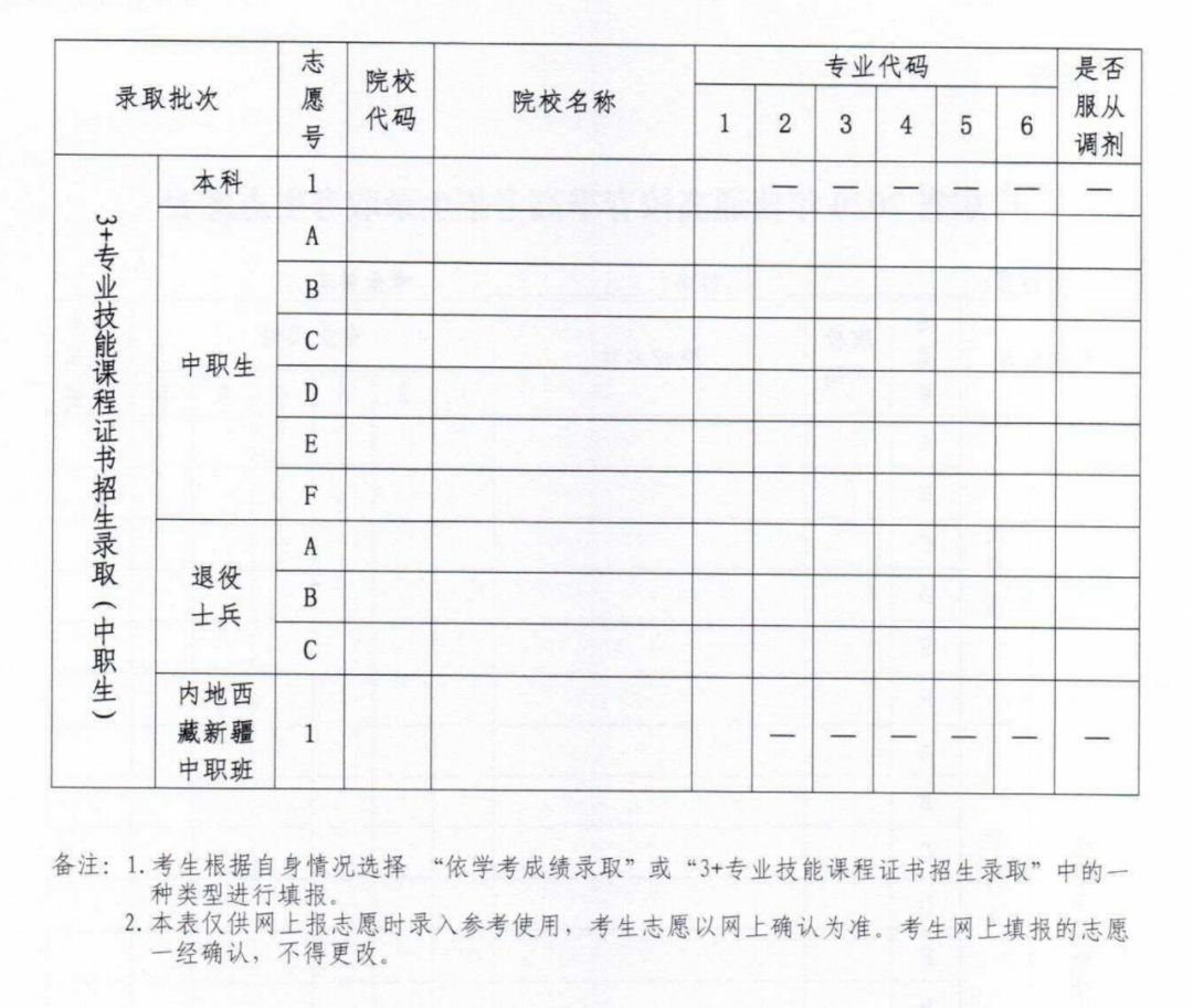 请各级教育行政部门、招生办公室迅速将此通知转发至辖区内招生办公室、普通高中学校及中等职业学校。各级招生考试机构、各中学要积极做好填报志愿的准备工作,加强春季高考招生政策的宣传和解读,让每一位考生充分知晓相关政策和要求,确保网上填报志愿安全、有序、顺利开展。 附件: 广东省2020年普通高校春季高考招生录取考生志愿表(样式)