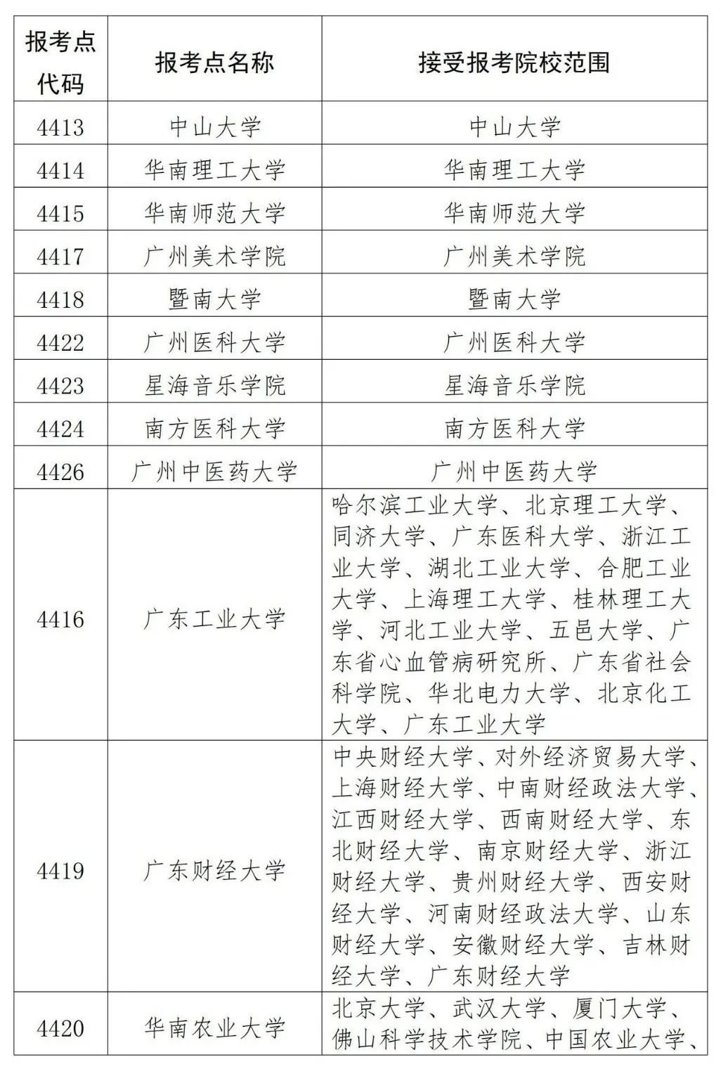 1.中山大学、华南理工大学、华南师范大学、暨南大学、广州医科大学、南方医科大学、广州中医药大学和深圳大学报考点分别只接受报考本校的考生报名。