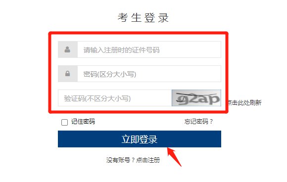 依次输入证件号码、密码及验证码,点击【立即登录】即可查询考试成绩。
