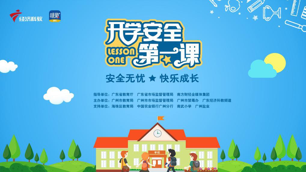 2021年9月开学季,广东省教育厅、广东省市场监督管理局、南方财经全媒体集团指导,广东经济科教频道联合广州市教育局、广州市市场监督管理局、广州市禁毒办共同举办2021秋季“开学安全教育第一课”。