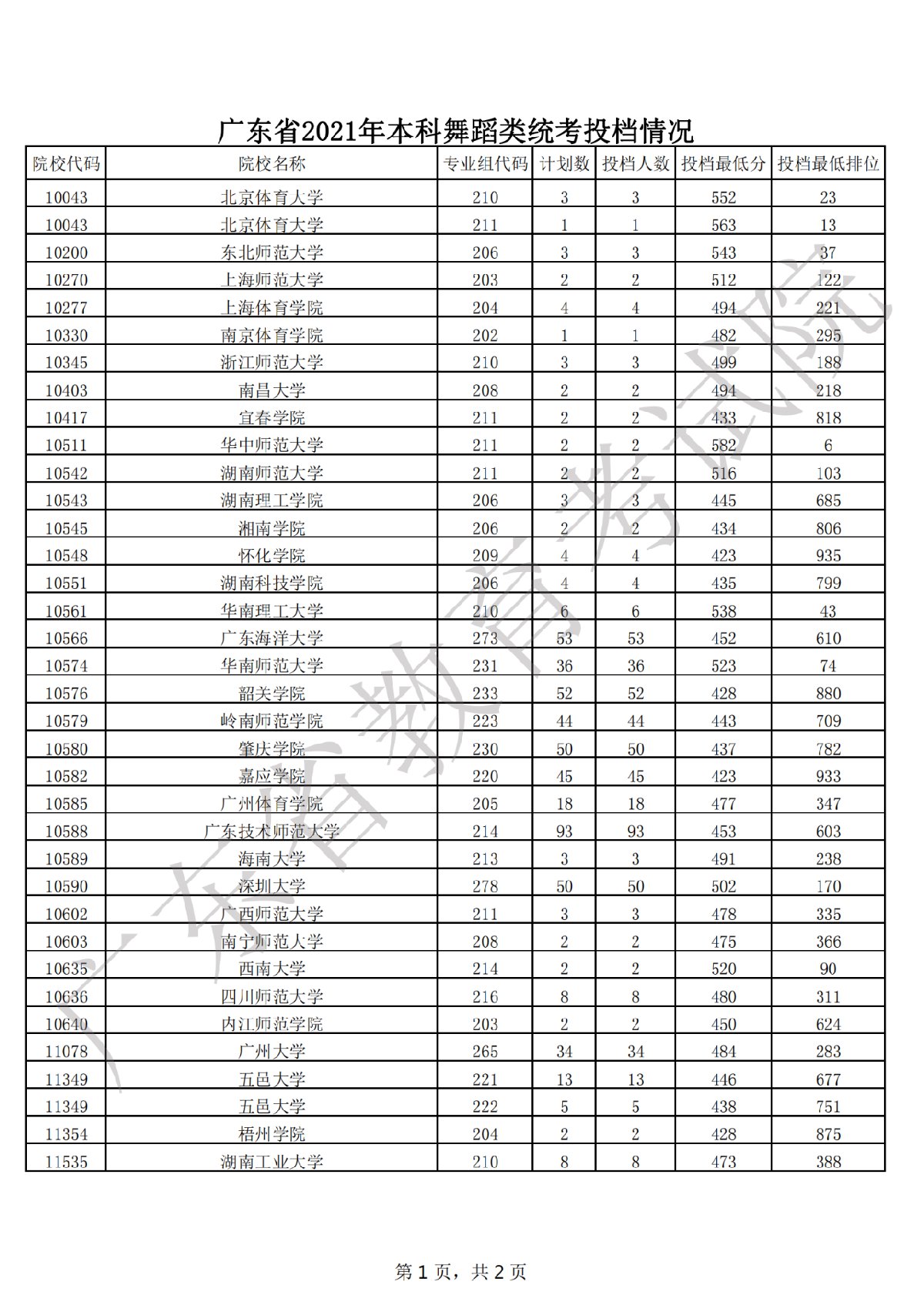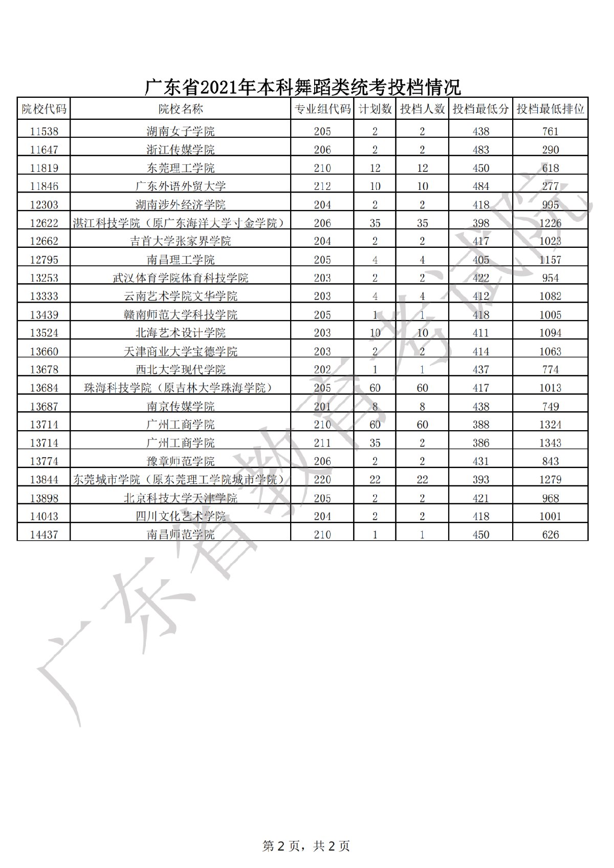 2021广东省本科舞蹈类统考投档情况(2021广东省本科舞蹈类统考投档情况如何)