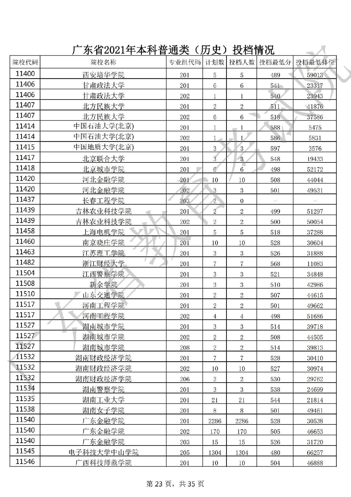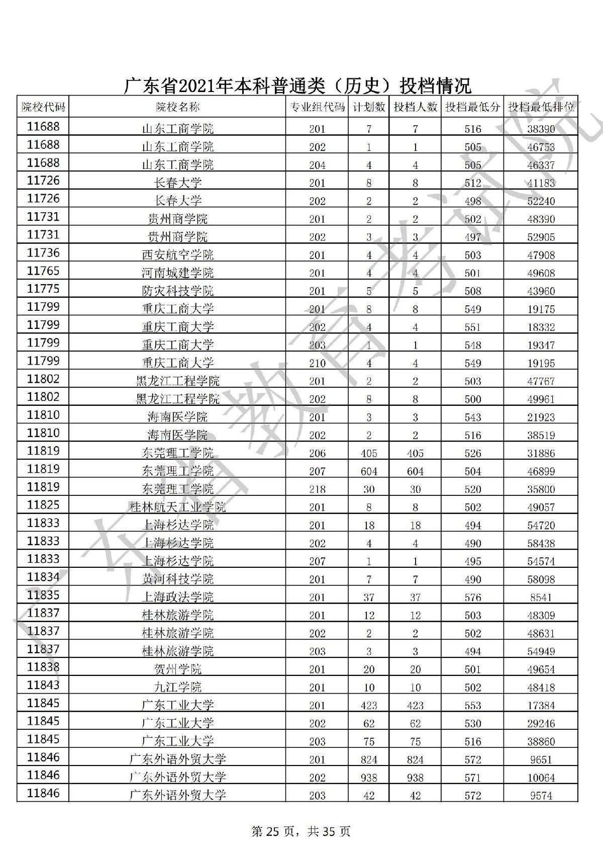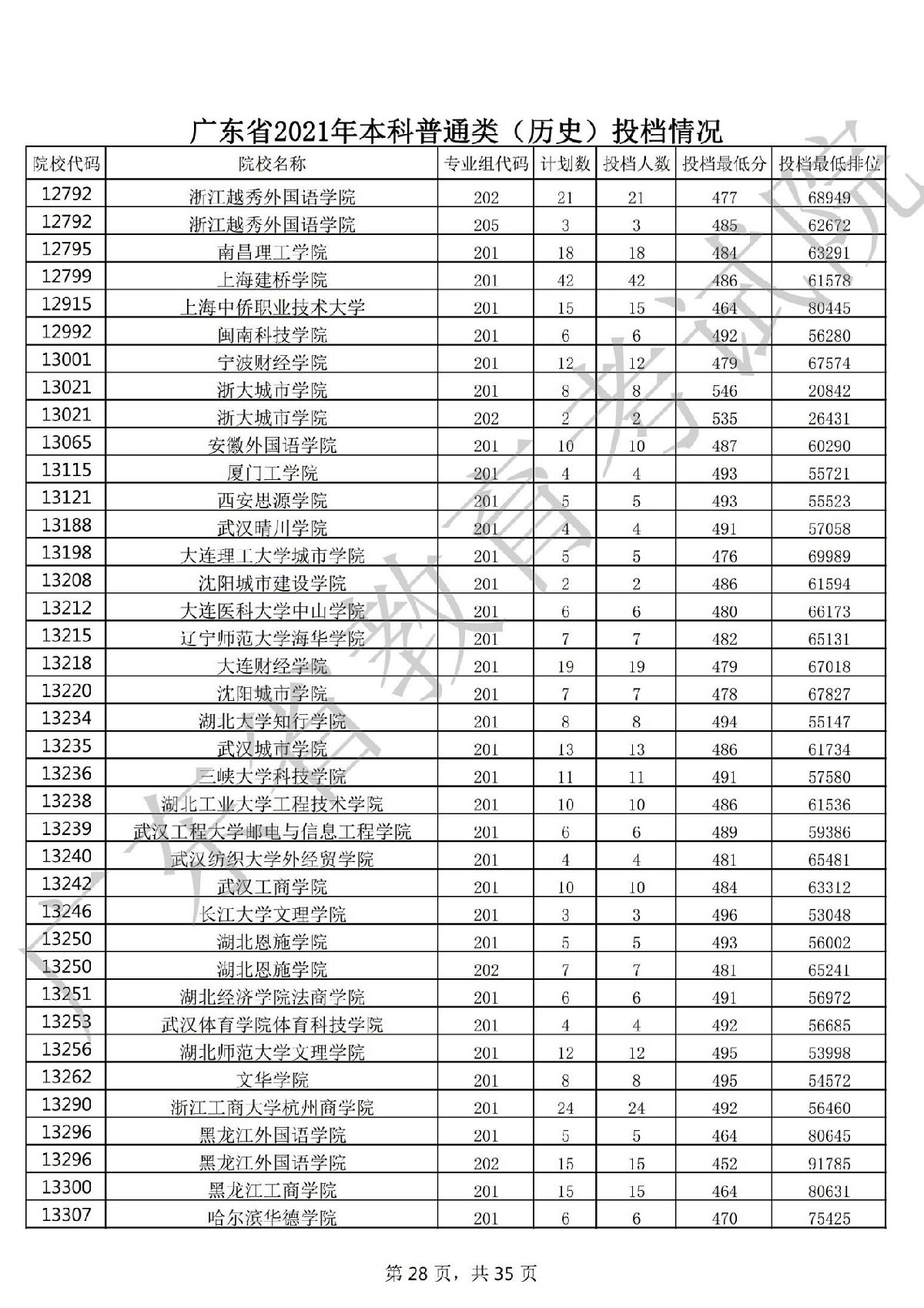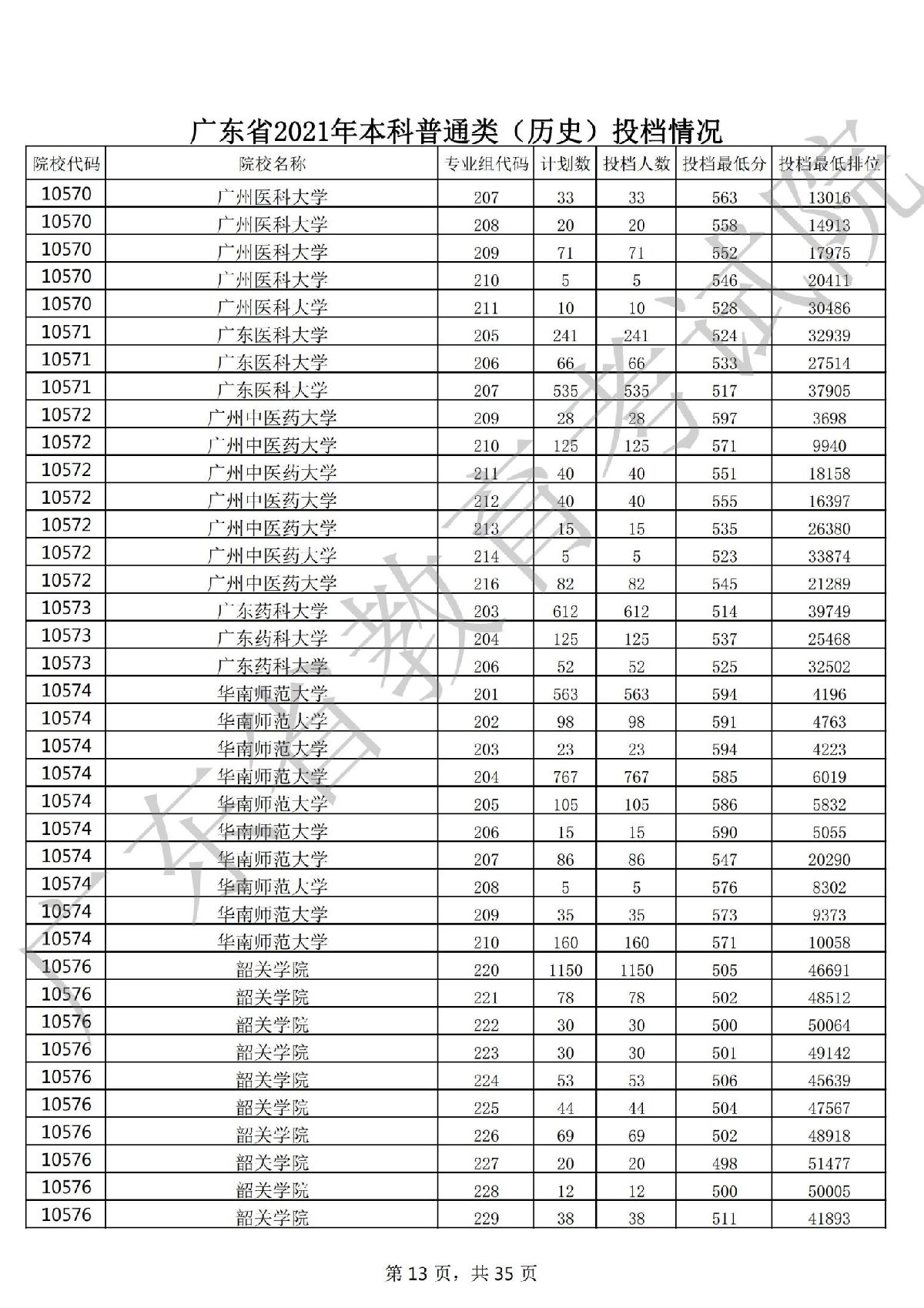 广东省2021年本科普通类 广东省2021年本科普通类(物理投档情况