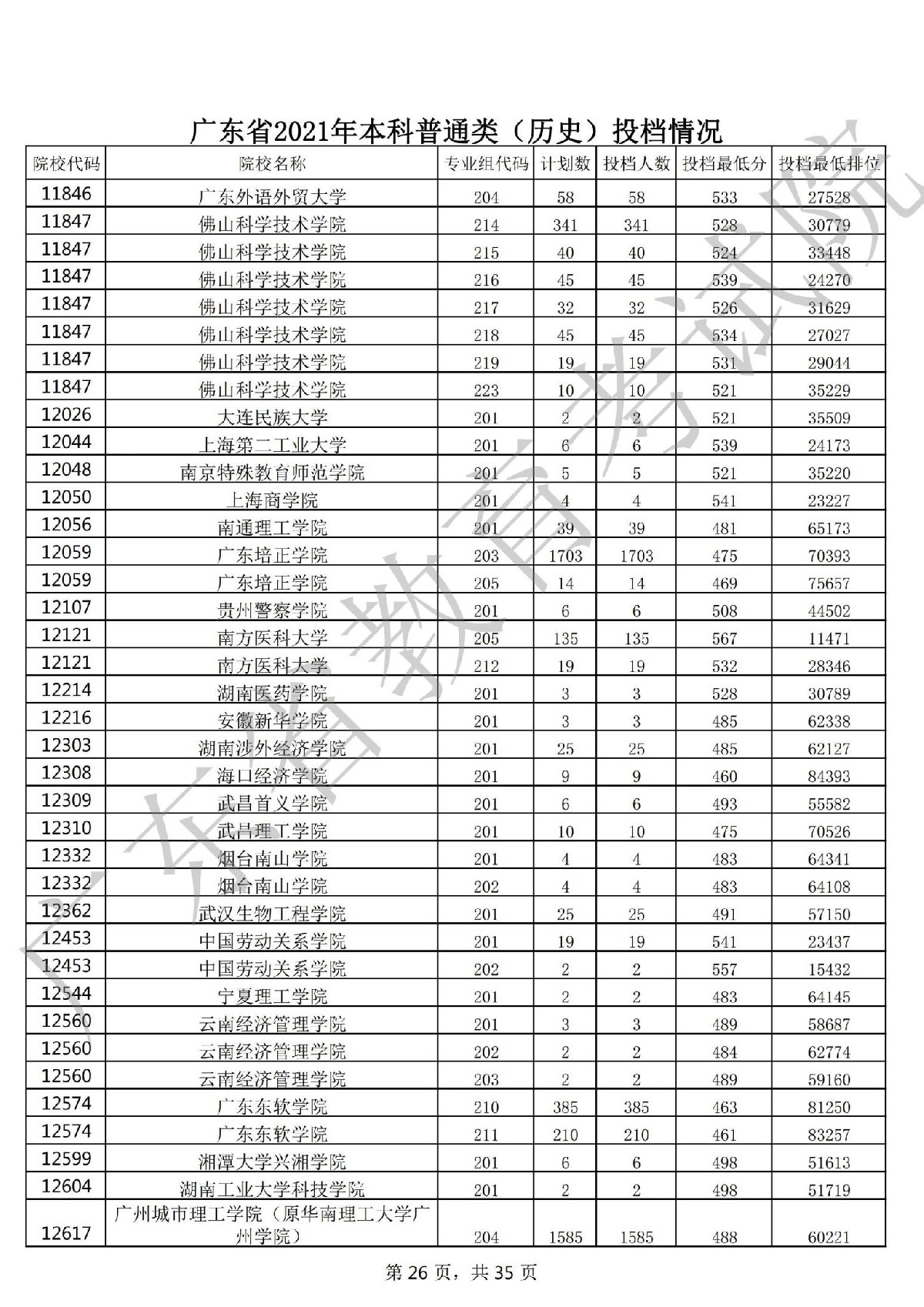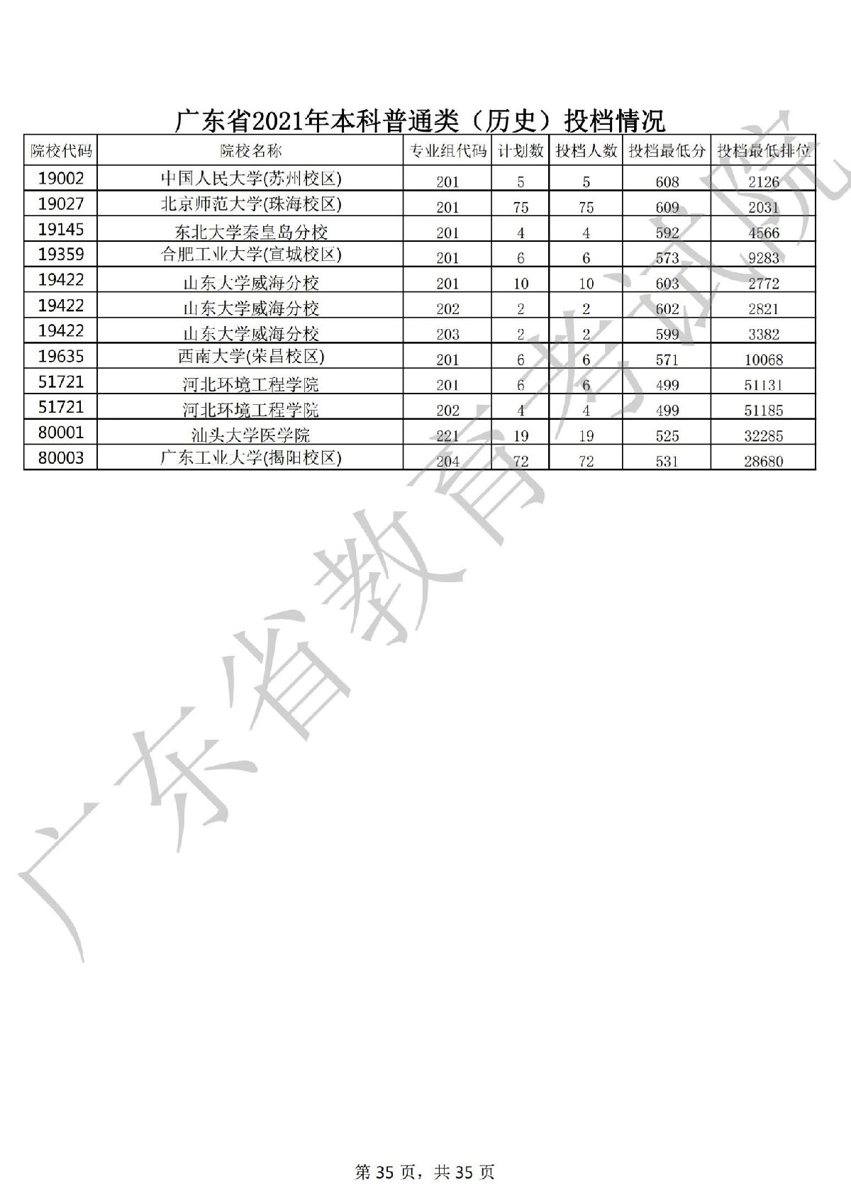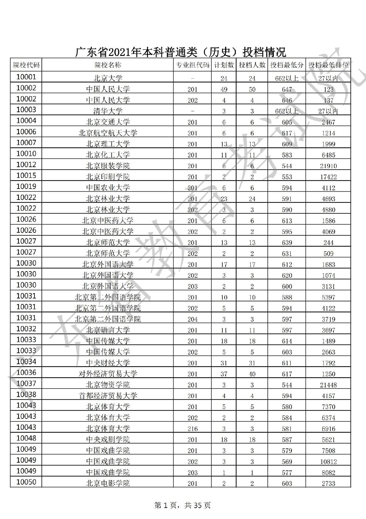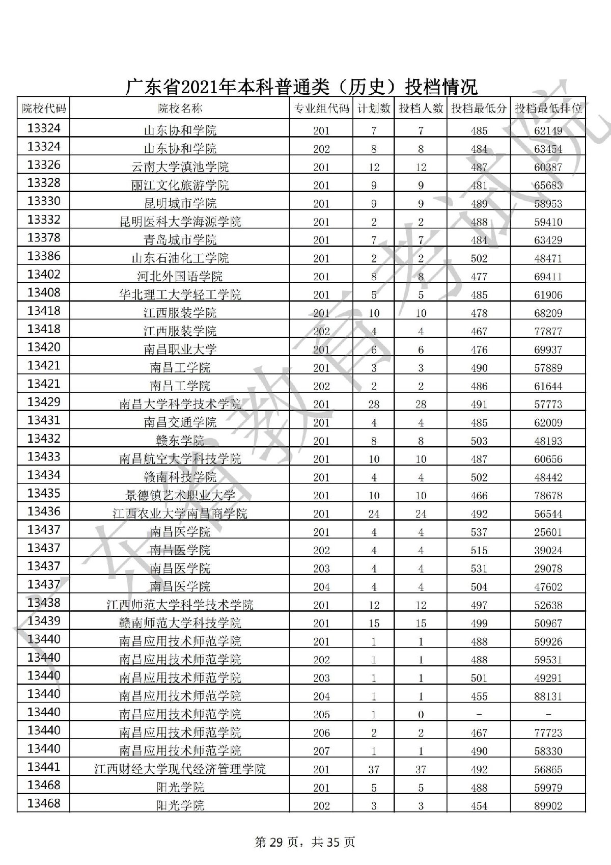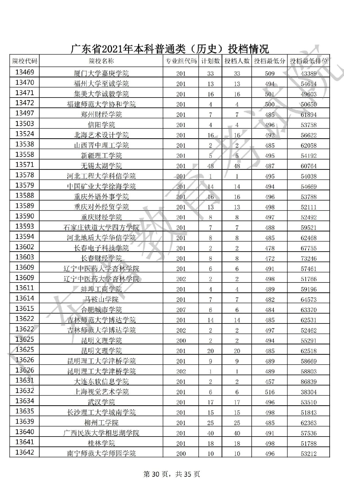 广东省2021年本科普通类 广东省2021年本科普通类(物理投档情况