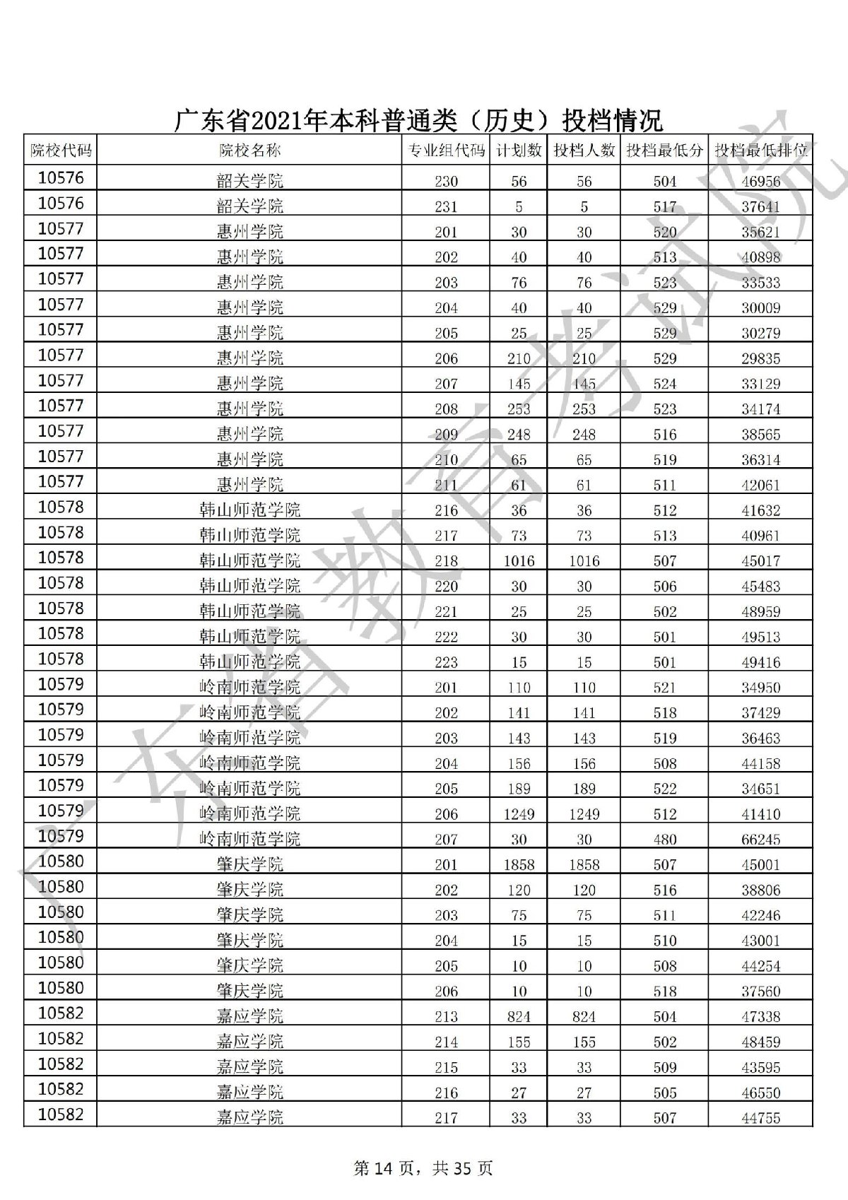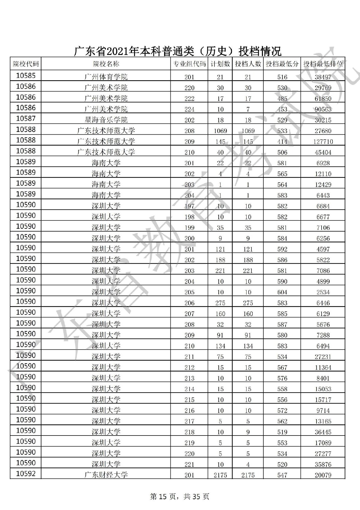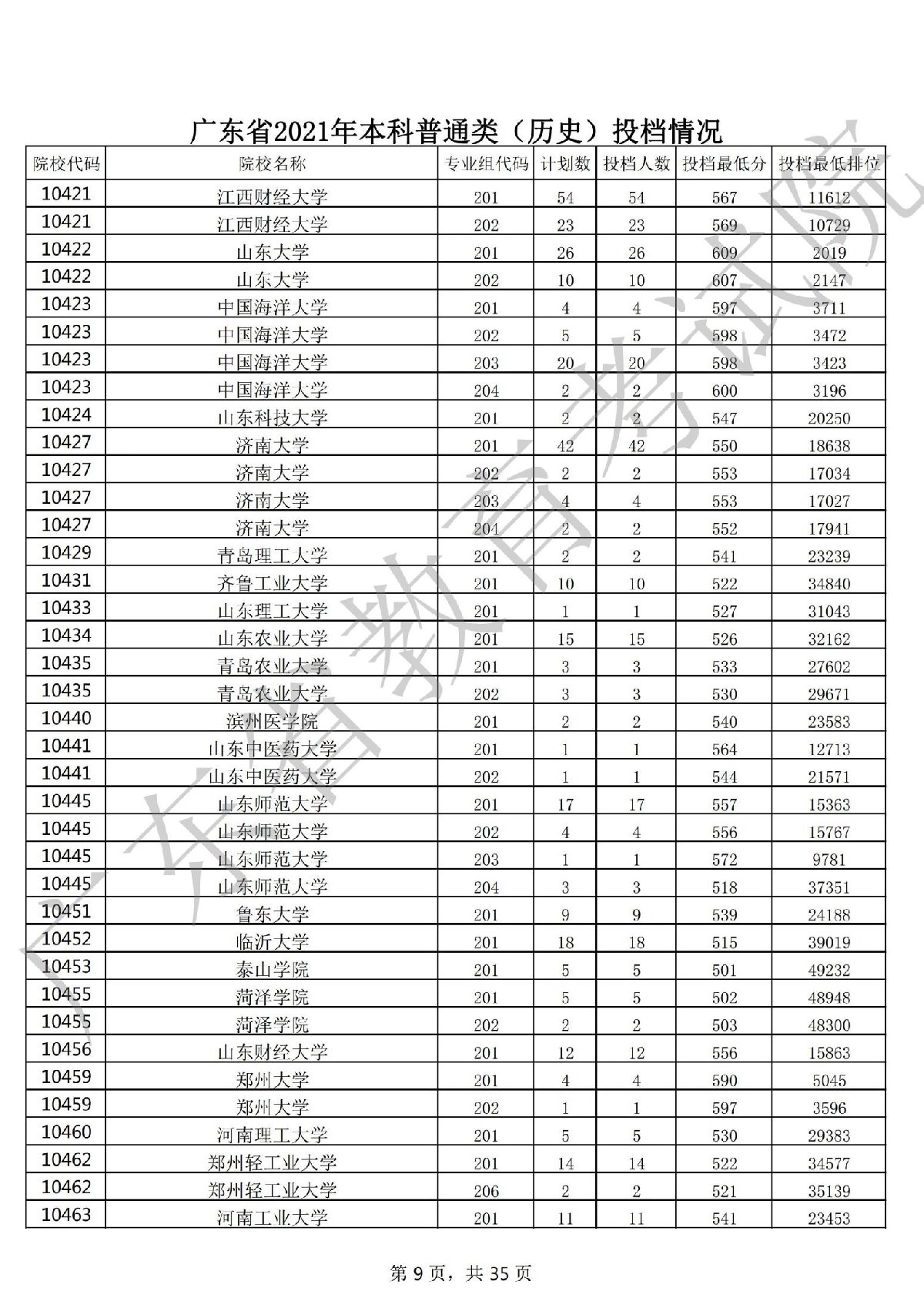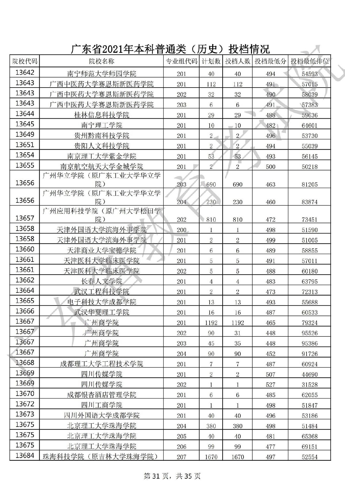 广东省2021年本科普通类 广东省2021年本科普通类(物理投档情况