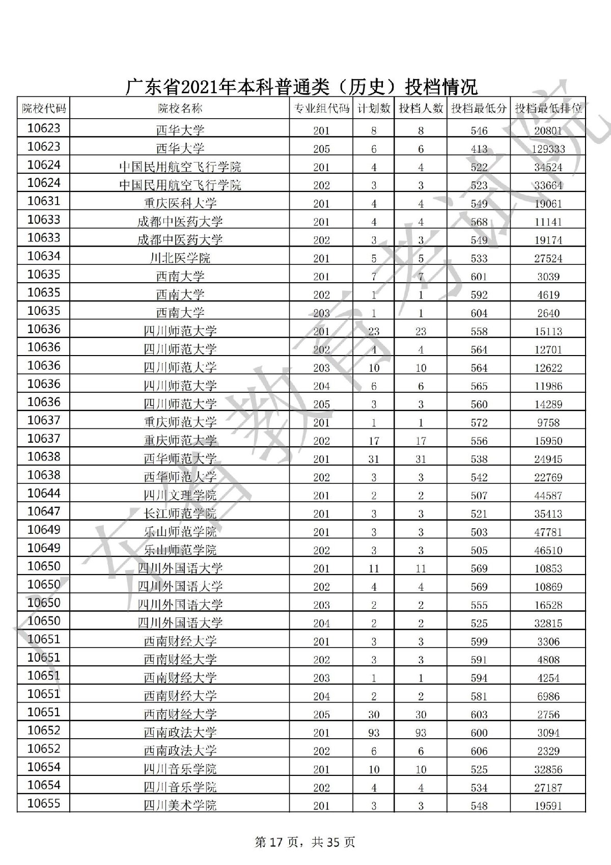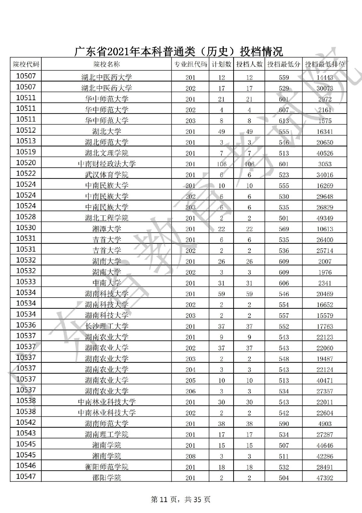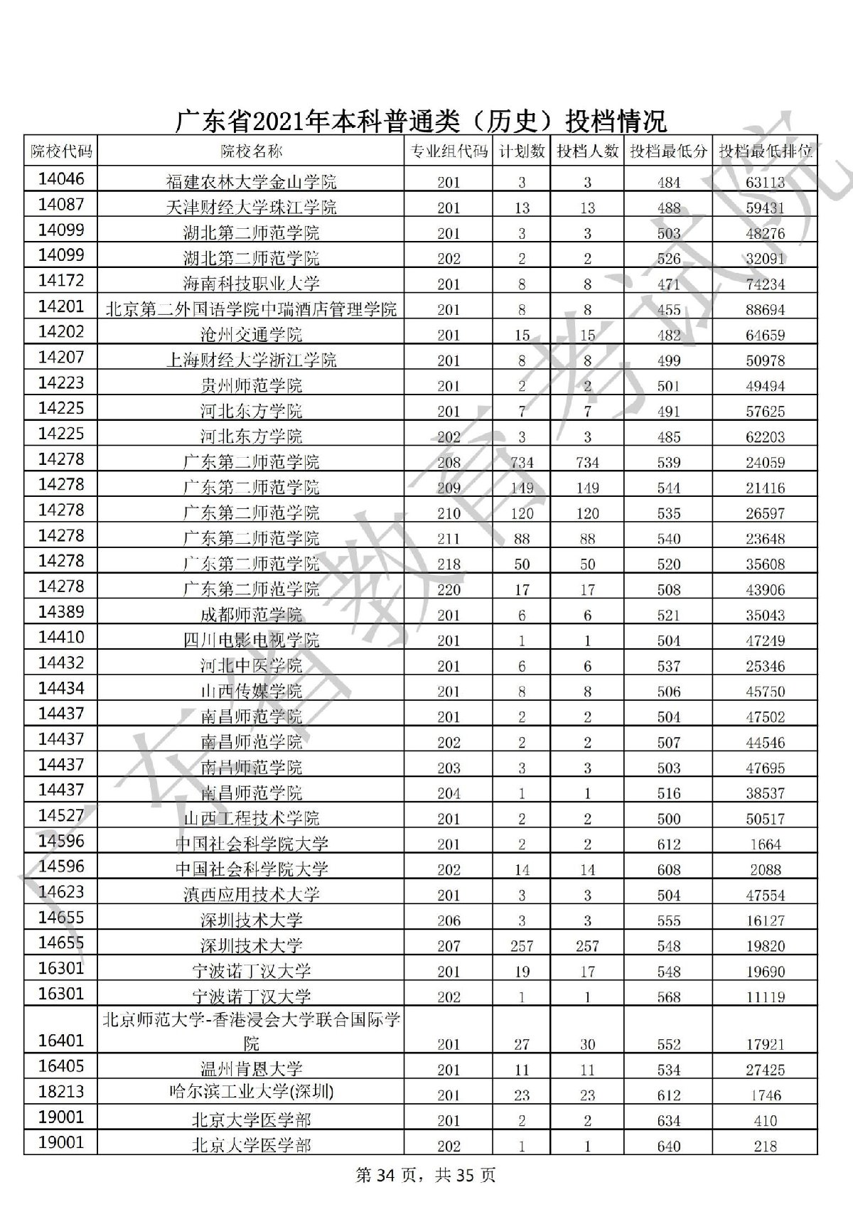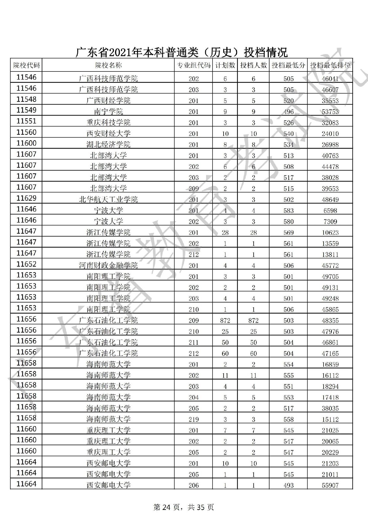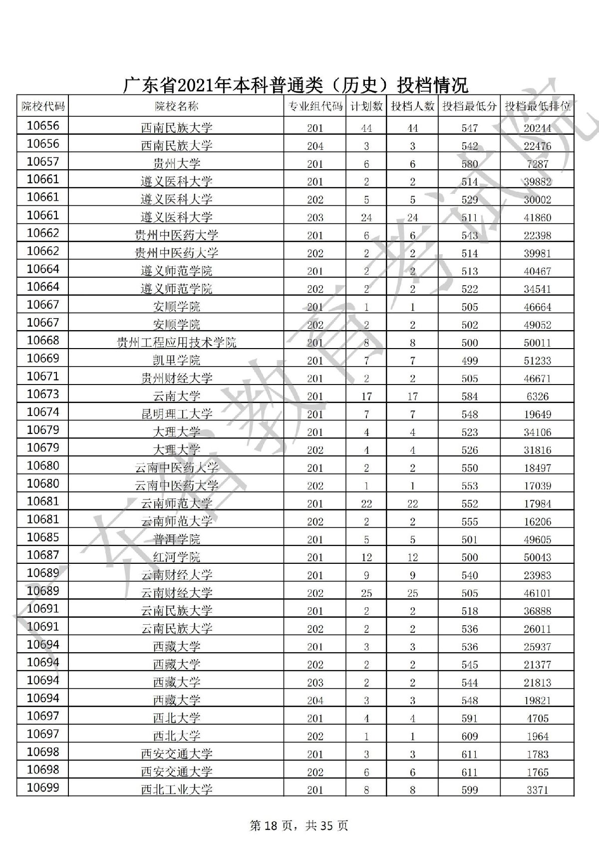 广东省2021年本科普通类 广东省2021年本科普通类(物理投档情况
