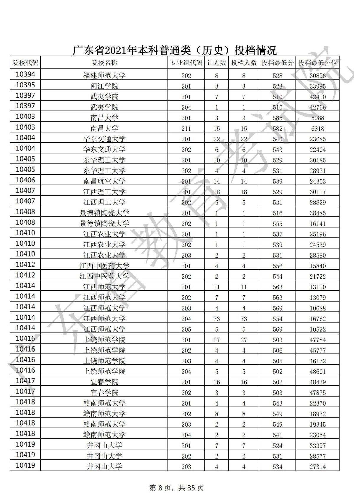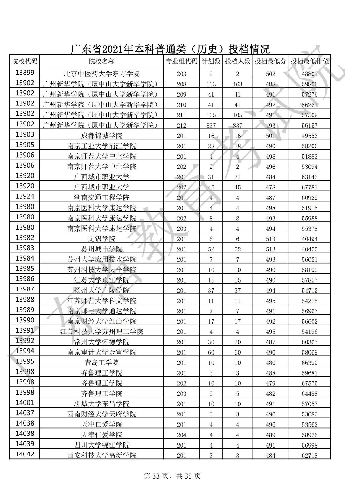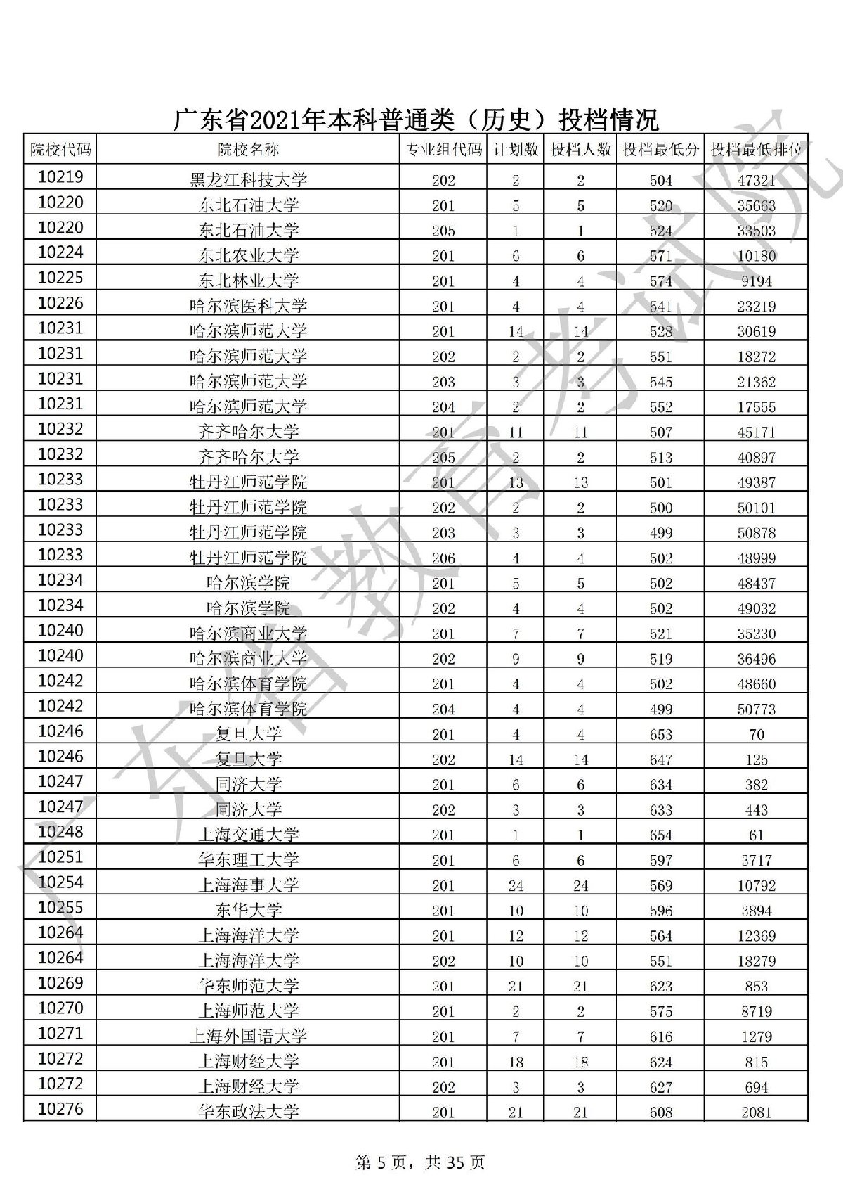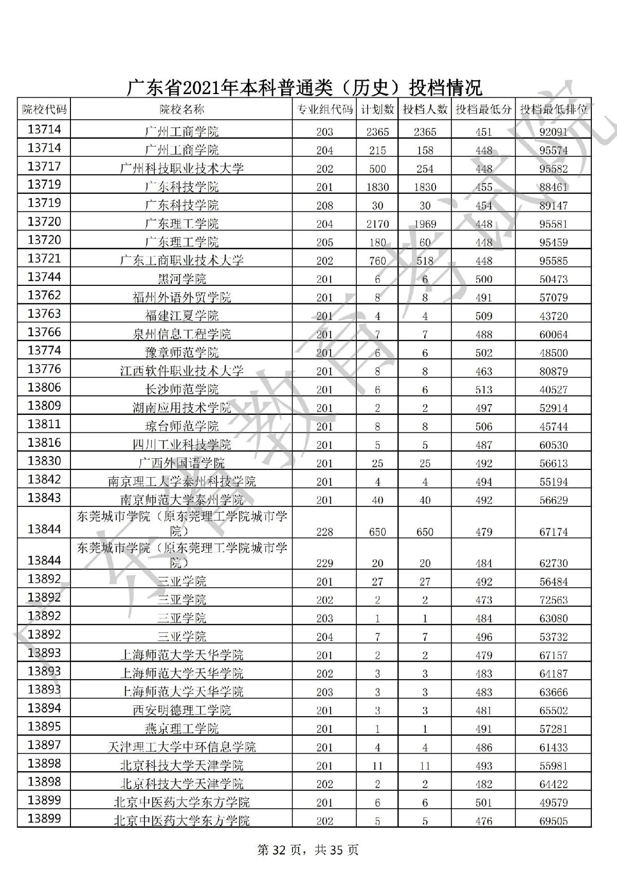 广东省2021年本科普通类 广东省2021年本科普通类(物理投档情况
