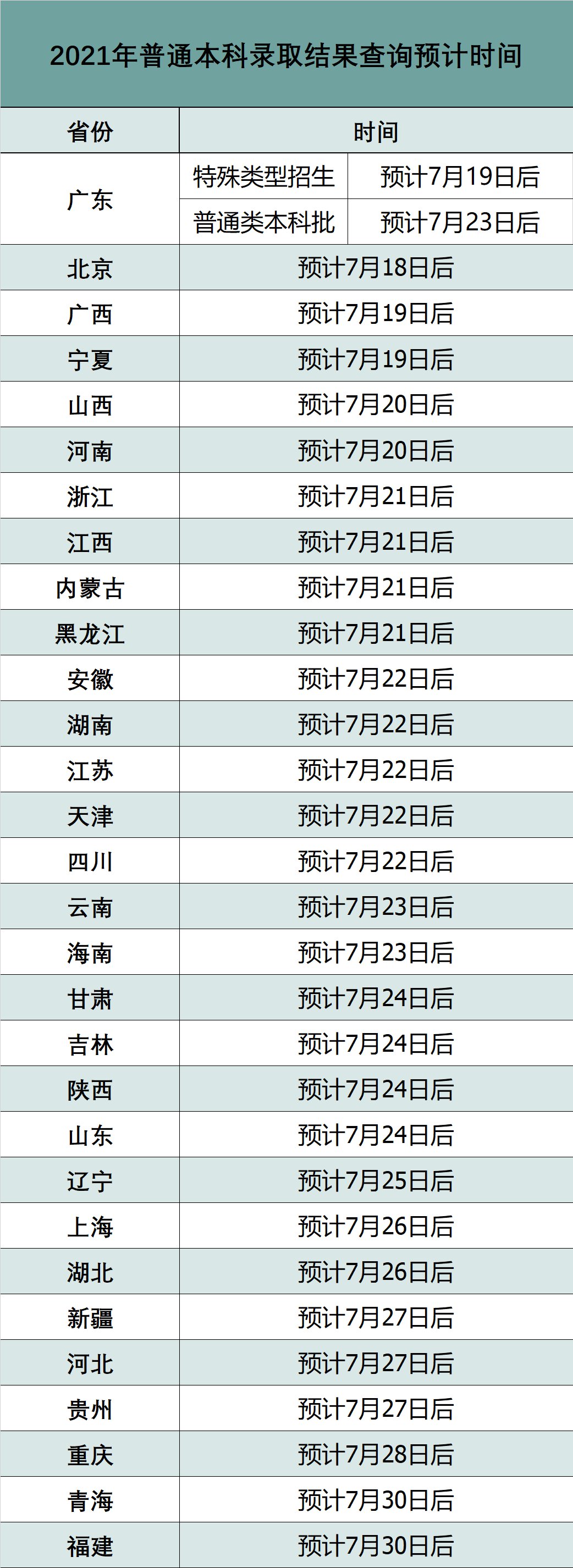 【各省份录取结果查询预计时间