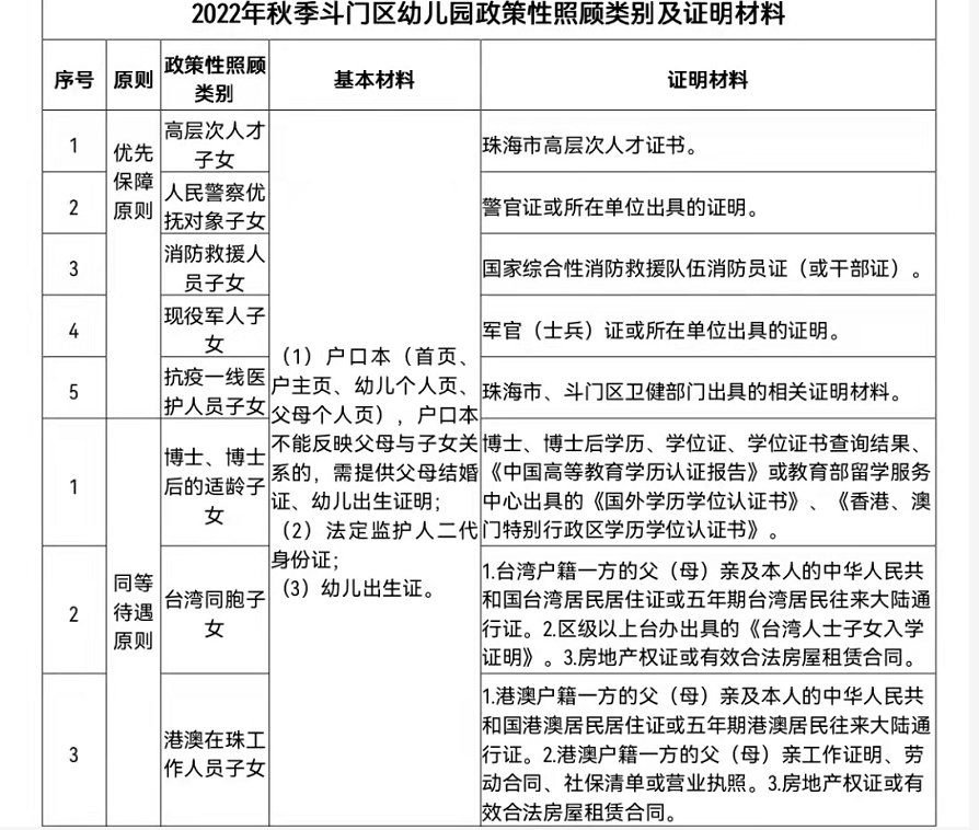 按照《珠海市教育局关于做好2022年幼儿园招生工作的通知》(珠教基〔2022〕3号)相关要求,为做好2022年秋季斗门区幼儿园招生工作,切实推进幼儿园招生工作公开、安全、平稳、规范开展,现将2022年斗门区幼儿园招生工作有关事项通知如下: