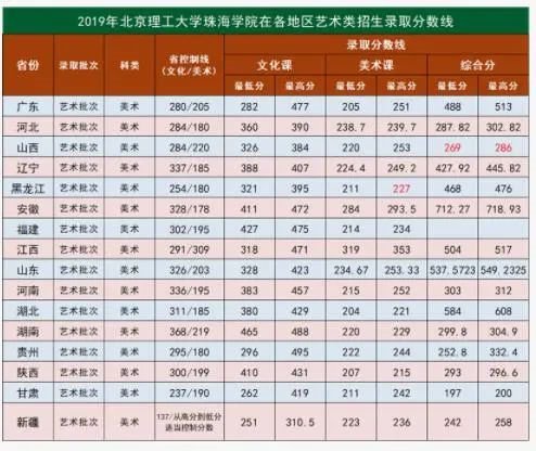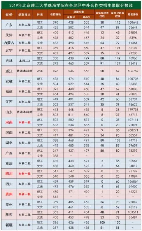 2019年北理珠全国各省市录取最低分数