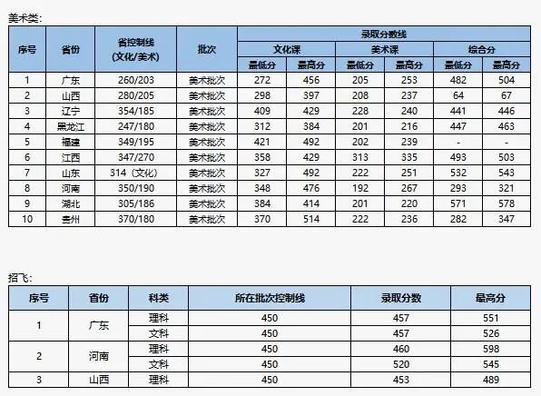 艺术类及招飞专业: