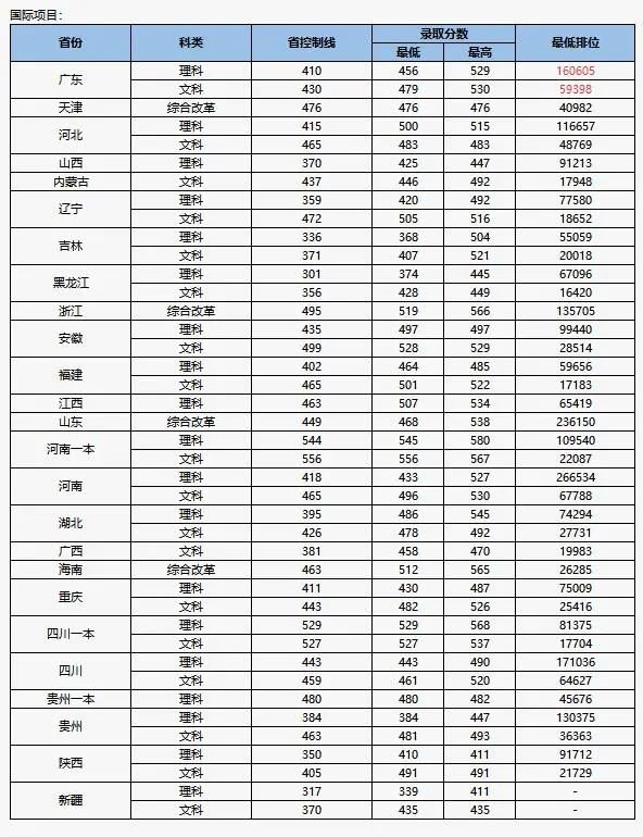 2020年北理珠全国各省市录取最低分数