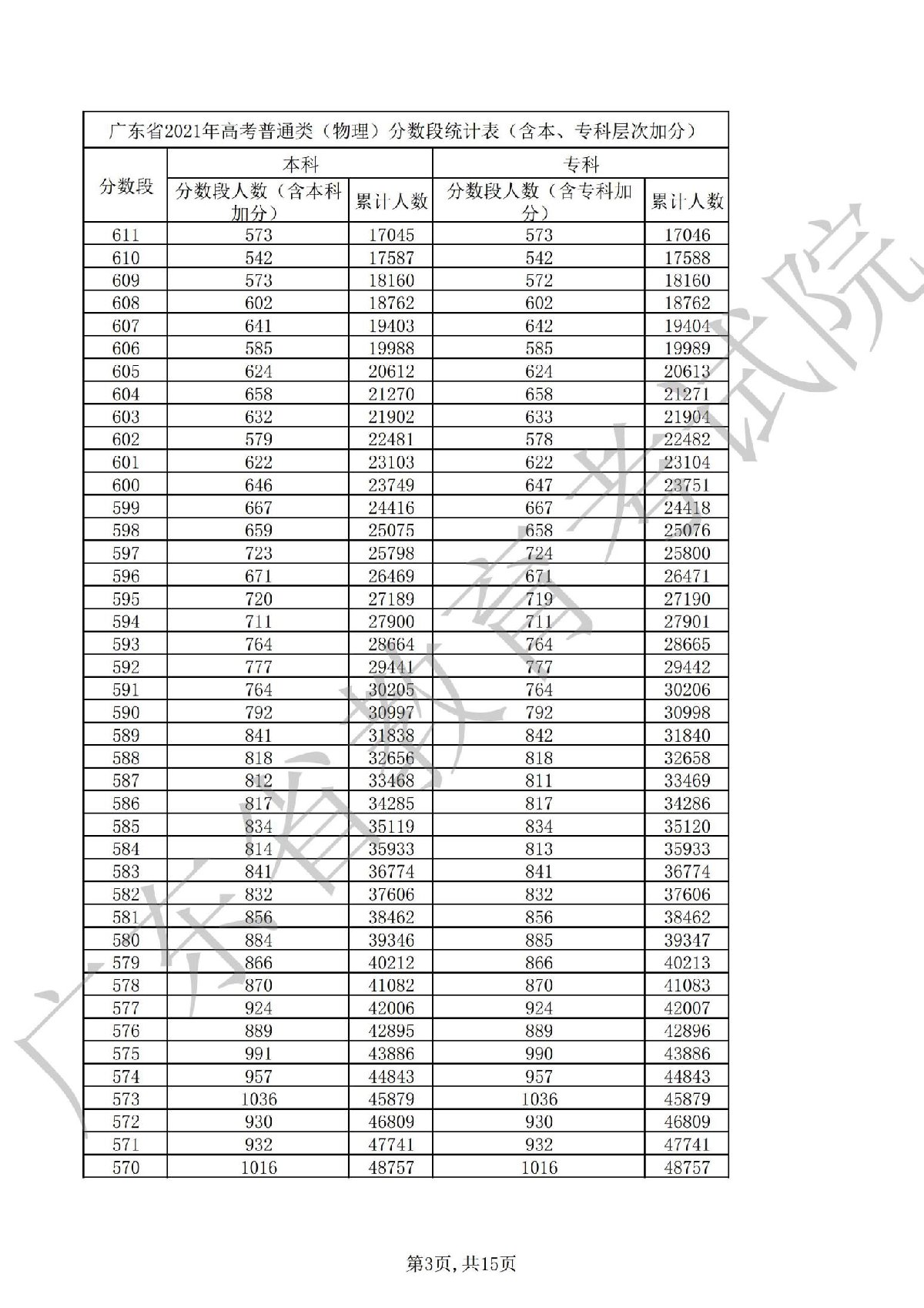 2021广东高考一分一段表 2021广东高考一分一段表理科
