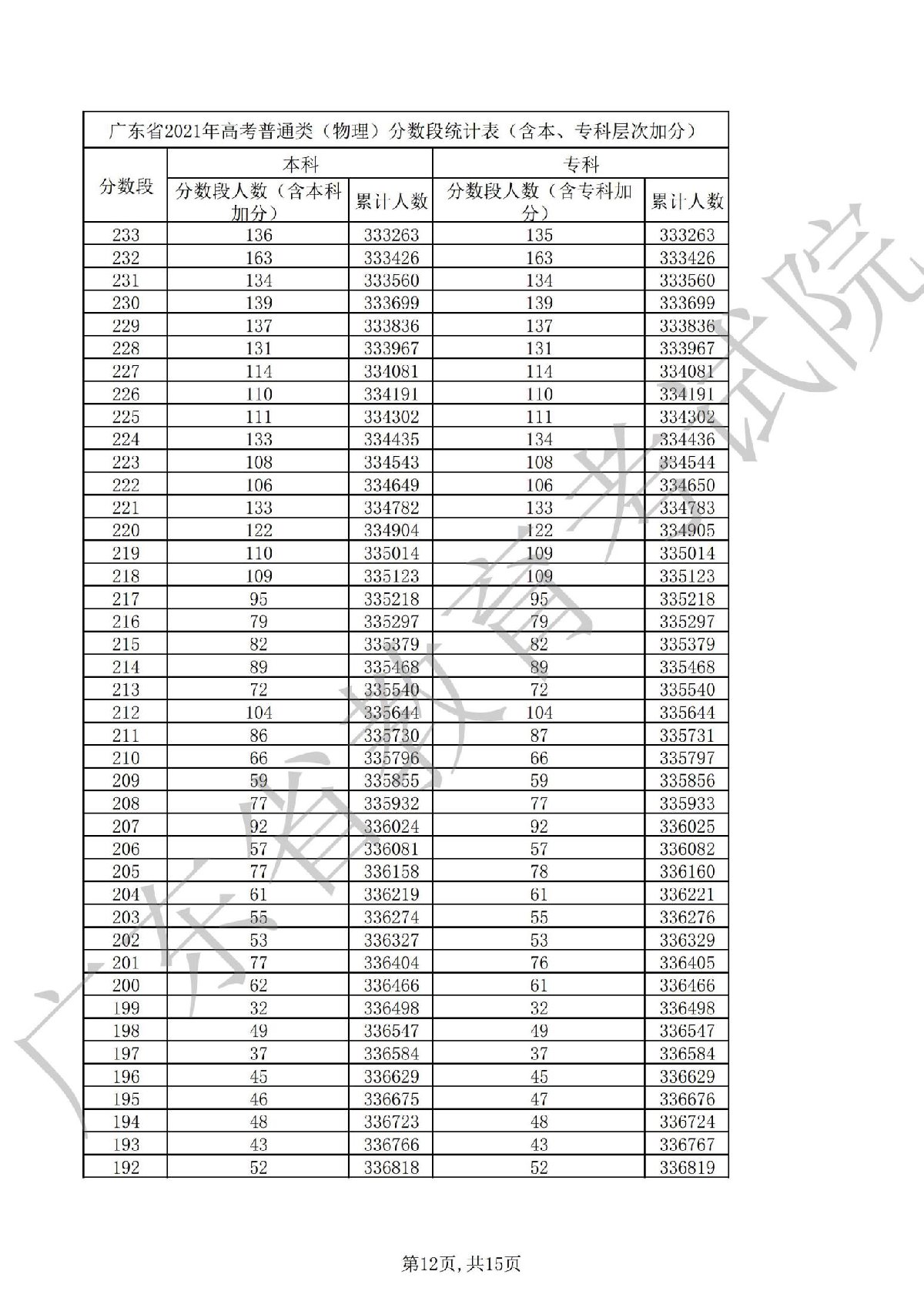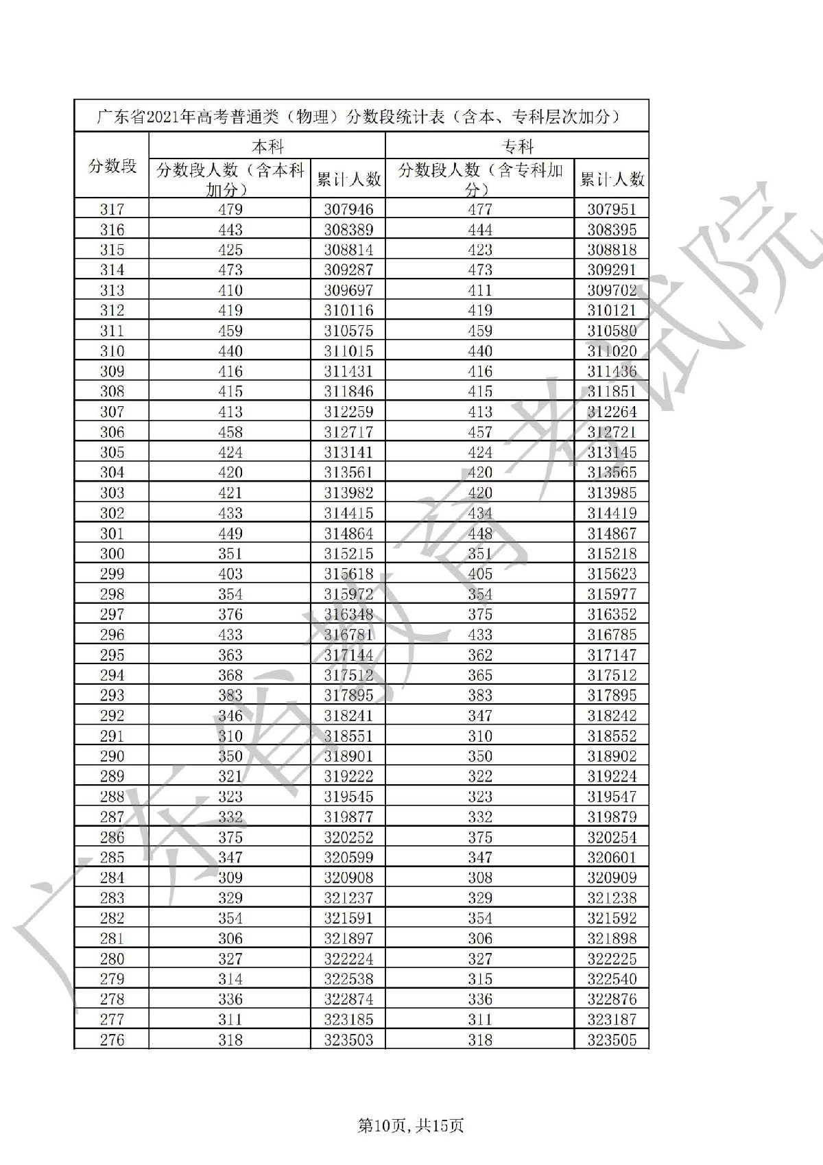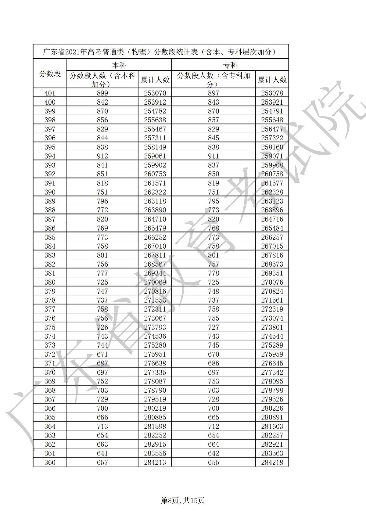 2021广东高考一分一段表 2021广东高考一分一段表物理
