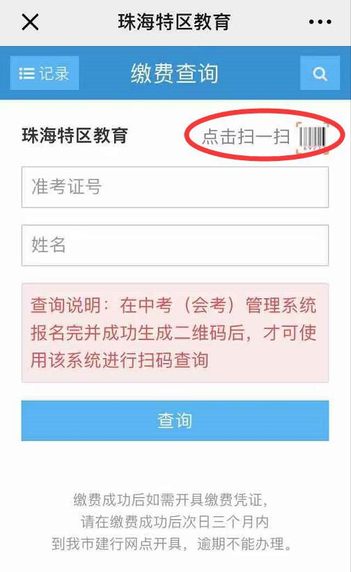 进入在缴费页面,点击右侧的“点击扫一扫”。