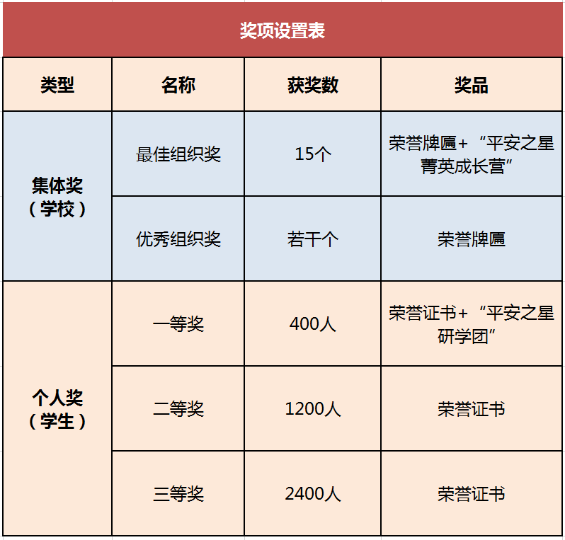 2020珠海平安校园安全知识竞赛活动个人奖项设置