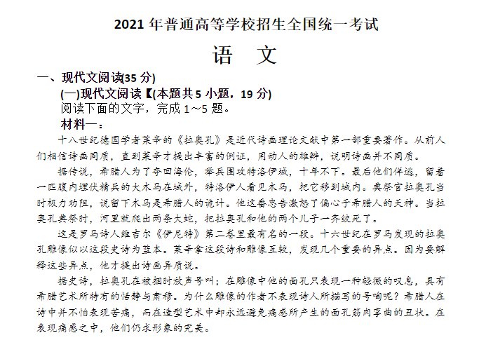 2021广东高考语文试题+答案+解析(2021广东新高考语文题目解析)
