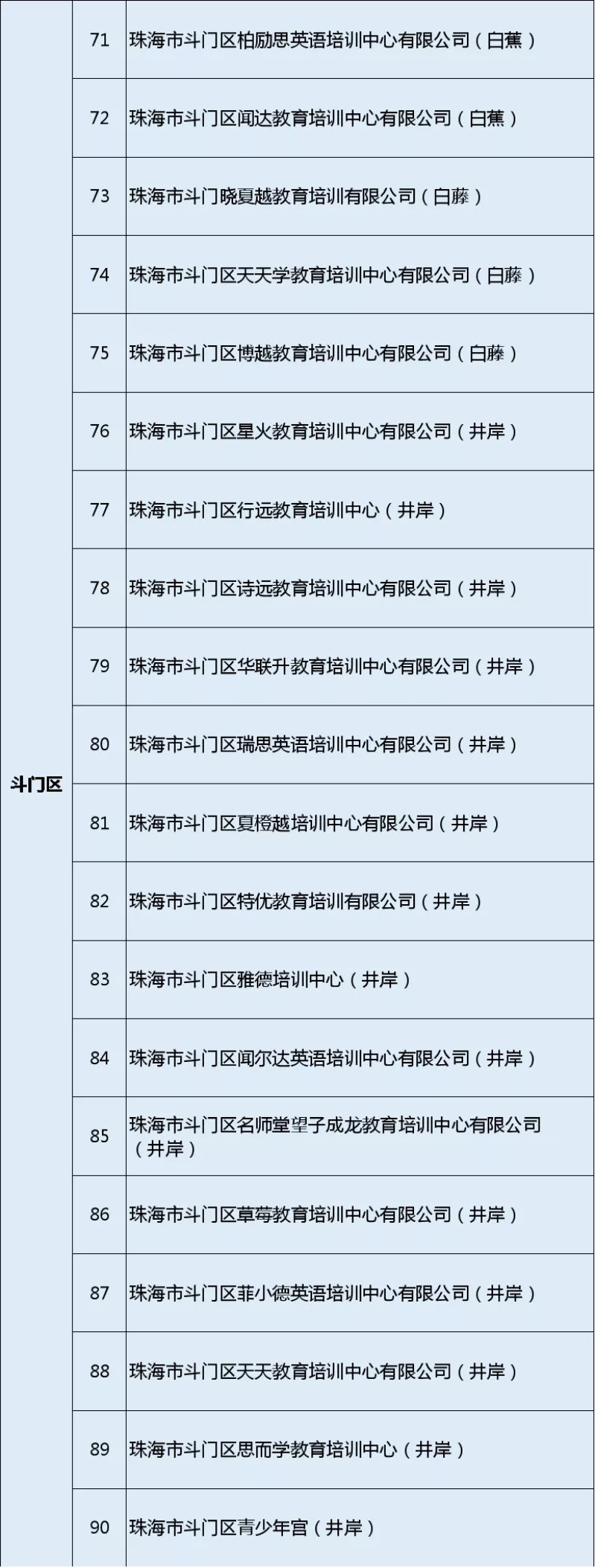 2020珠海校外培训机构复工复课名单(珠海复工培训补贴)