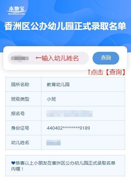 根据《2021年秋季香洲区公办幼儿园招生工作实施细则》,香洲区2021年公办幼儿园录取名单于7月26日公布。