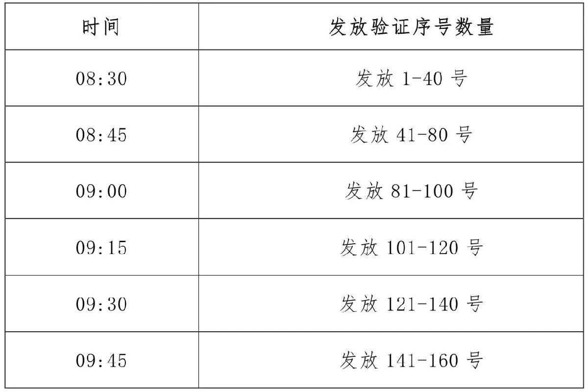 2、请幼儿和家长佩戴好口罩前来参加资格审核,我园将在幼儿园门口每隔15分钟按排队顺序派发验证序号,请家长安排好时间,听从工作人员指挥,按1米的间距有序排队领取验证序号。
