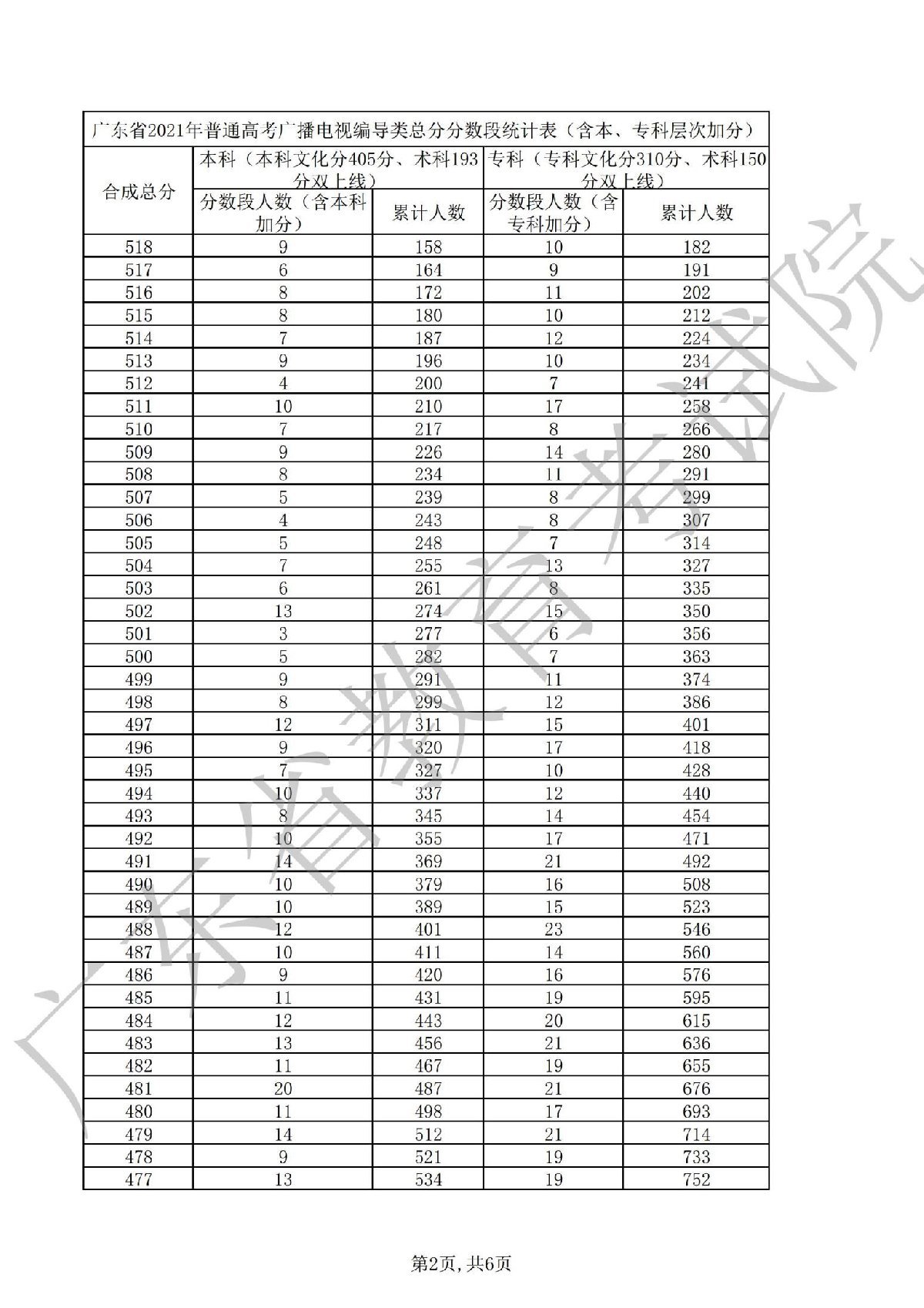 2021广东高考广播电视编导一分一段表(2021年广东省广播电视编导)