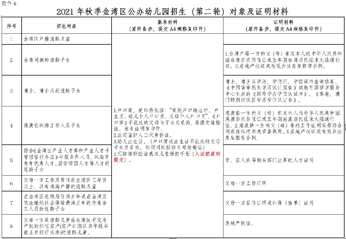4.港澳在珠海工作人员的适龄子女(父母房产在金湾区,无房产的要求父母工作单位在金湾区)。