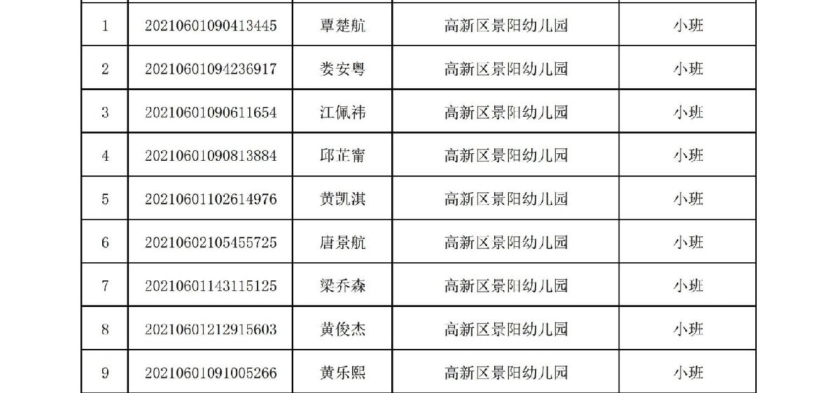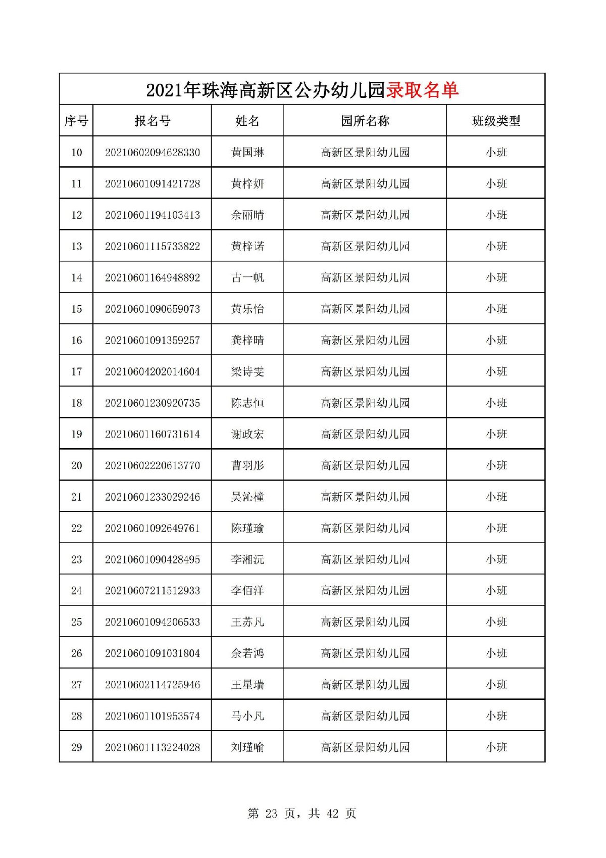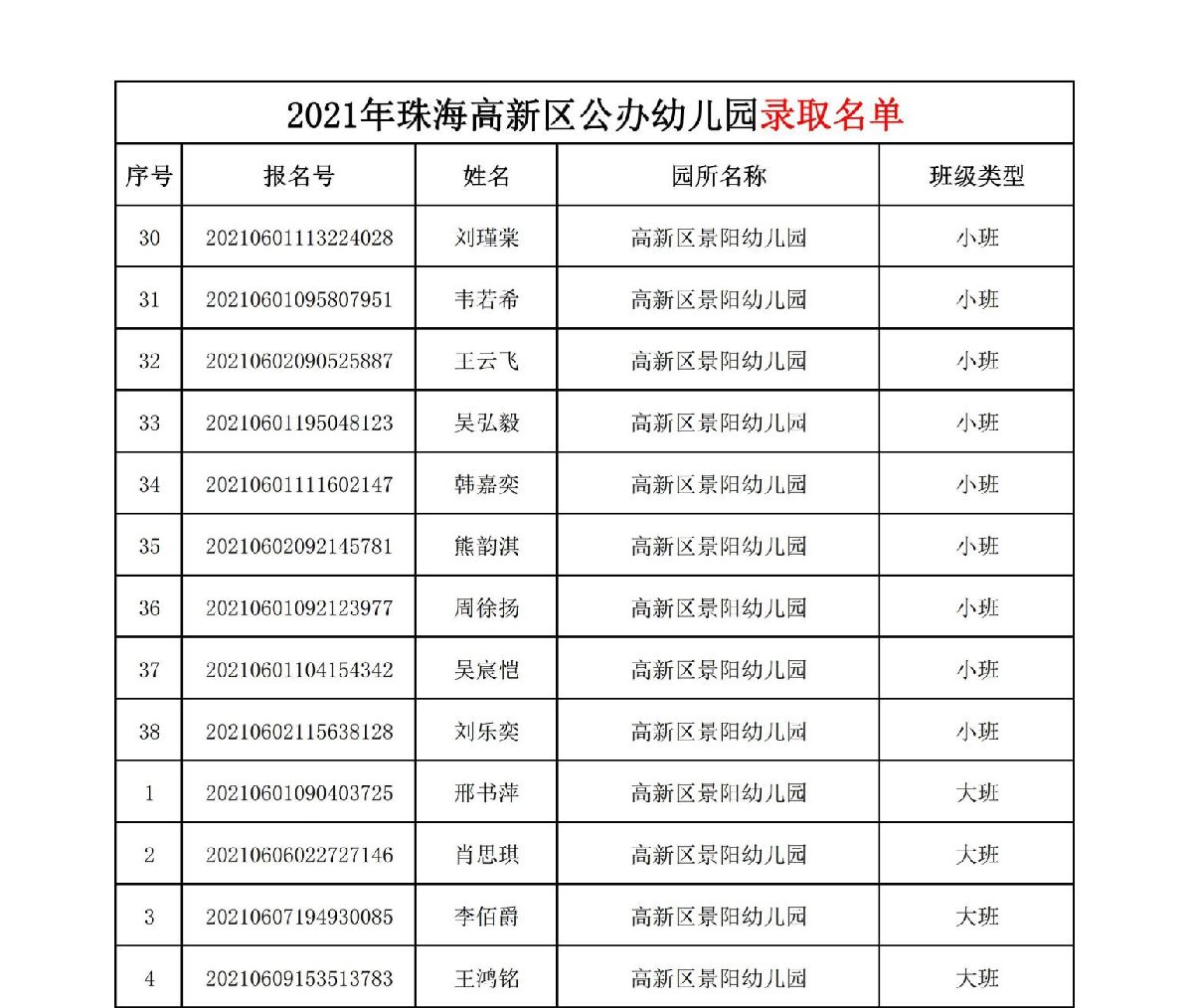 珠海高新区景阳幼儿园2021年录取名单 海珠区幼儿园招生2021