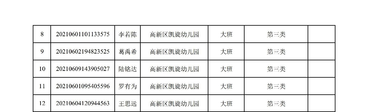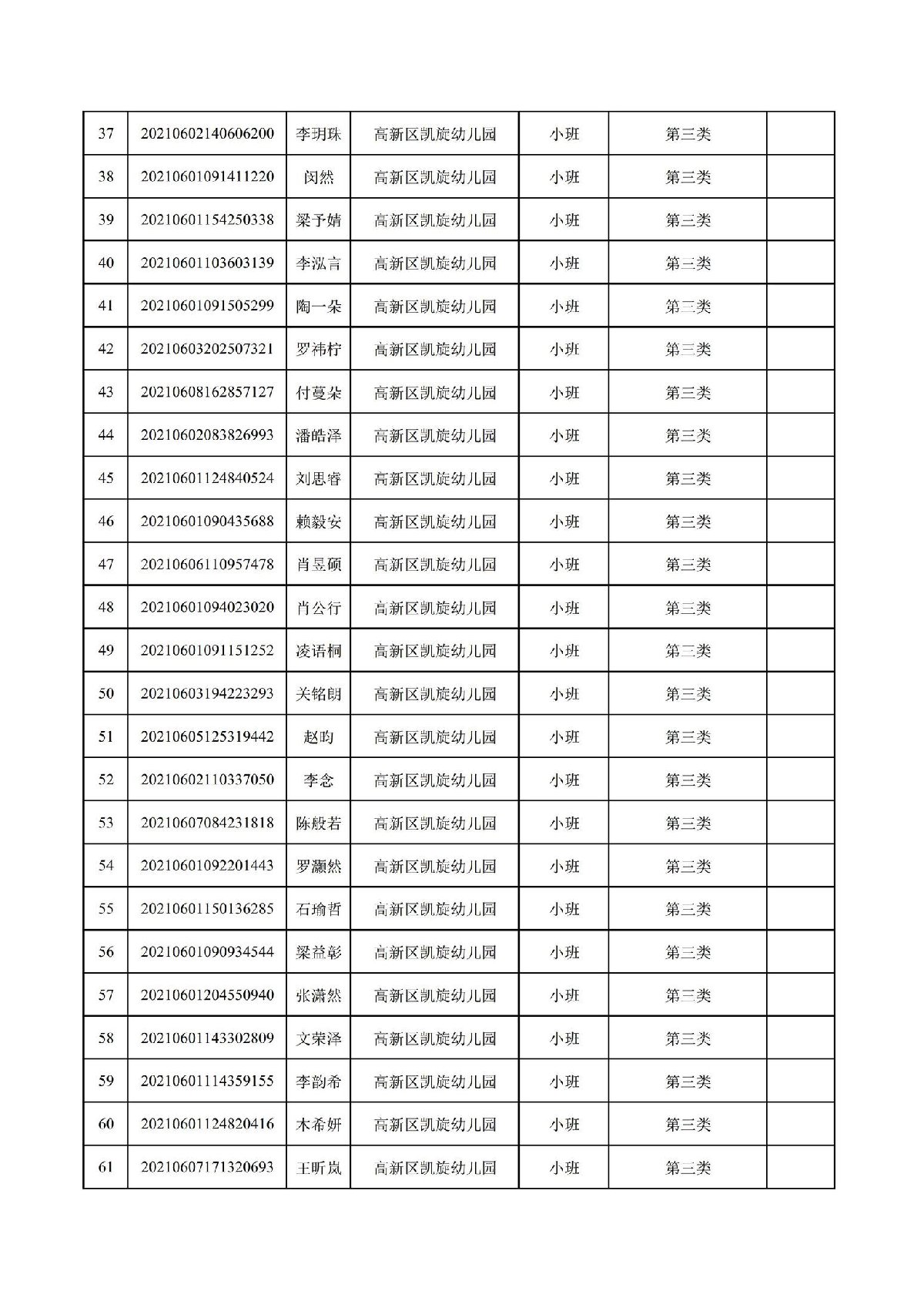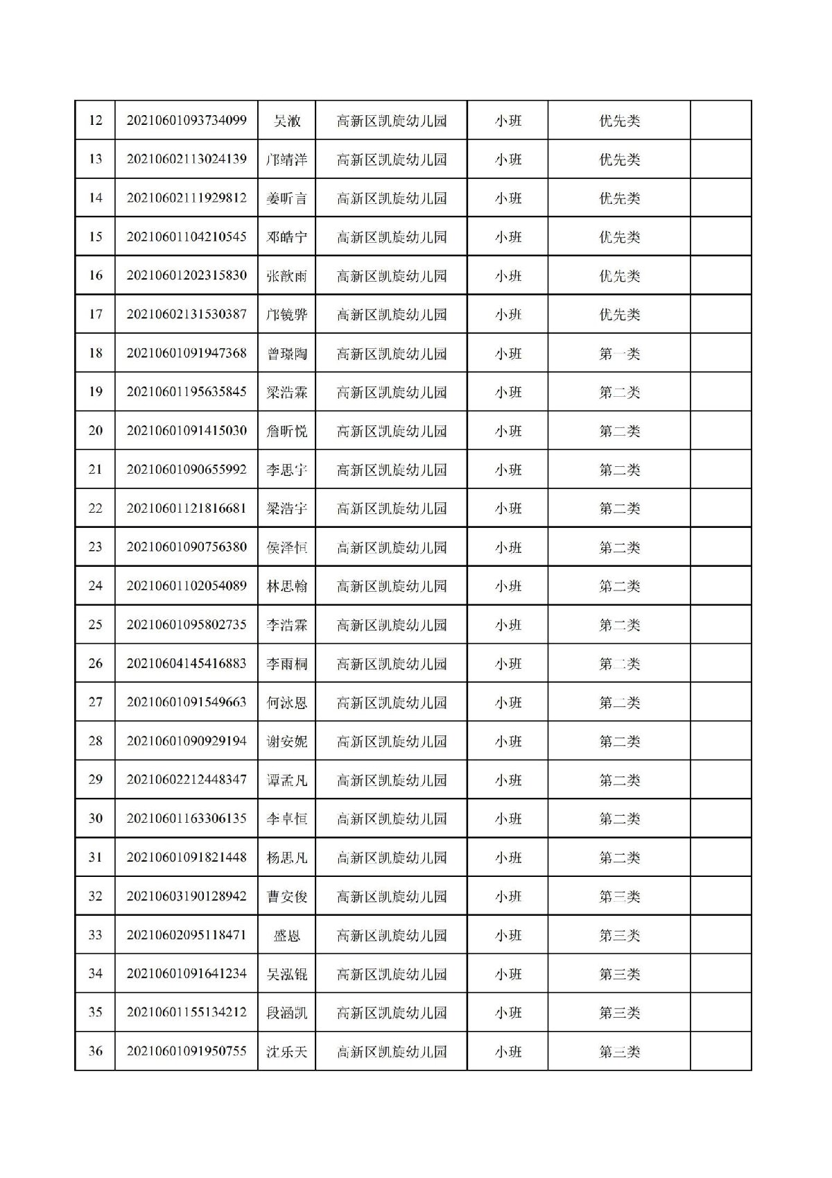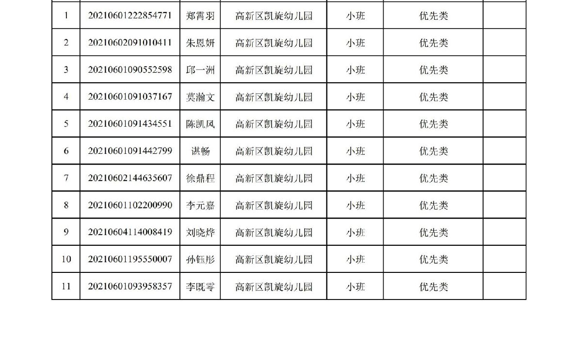 7月5日珠海高新区2021年公办幼儿园招生报读资格审核结果公示,高新区凯旋幼儿园符合报读资格的共有91人,包括小班79人,大班12人。以上为具体名单。