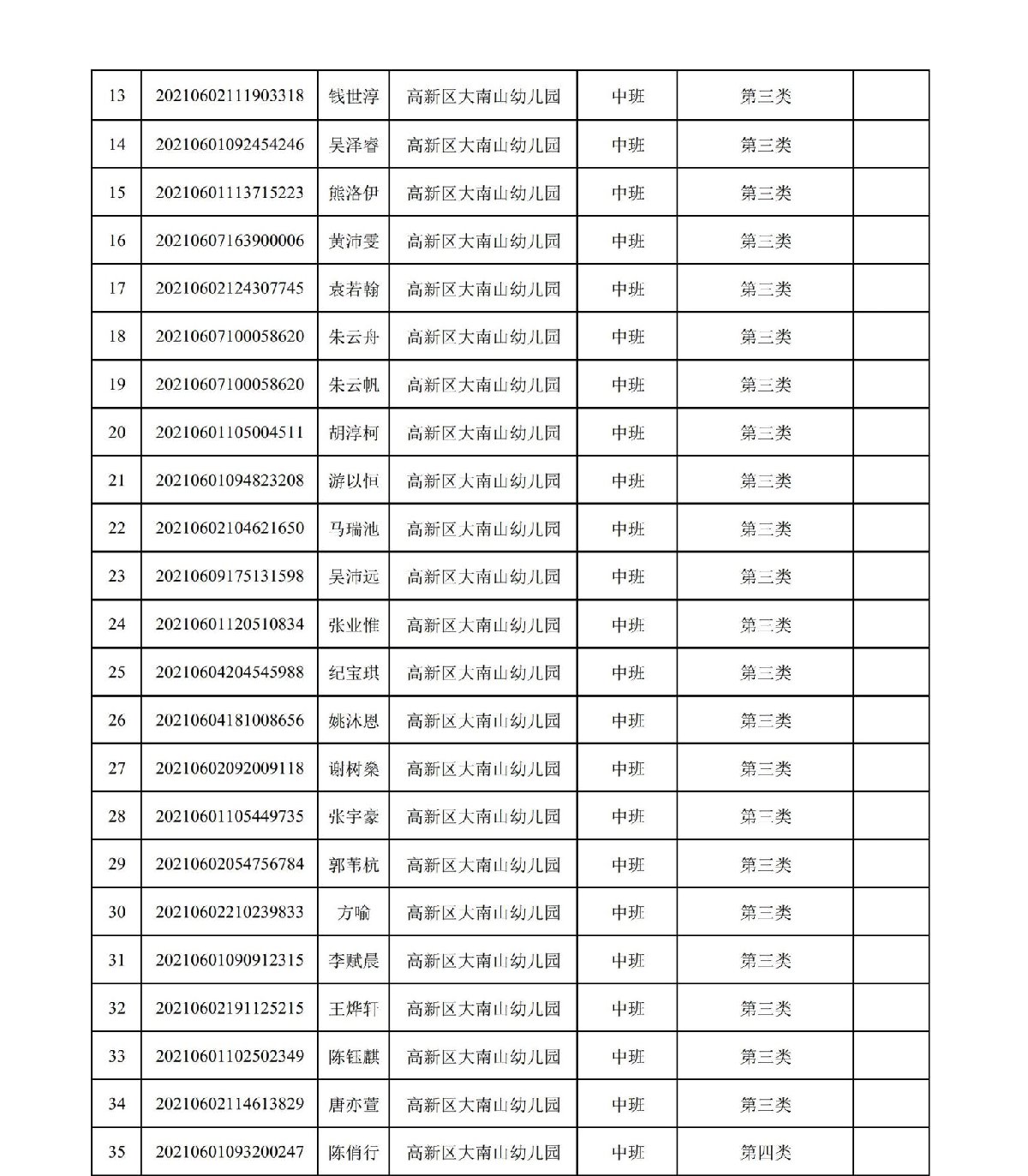 2021珠海高新区大南山幼儿园招生符合报读资格幼儿名单