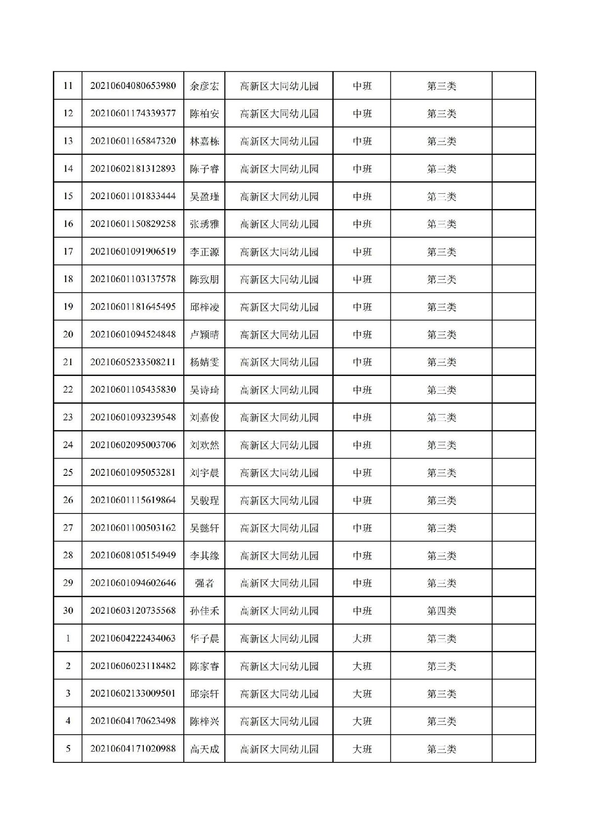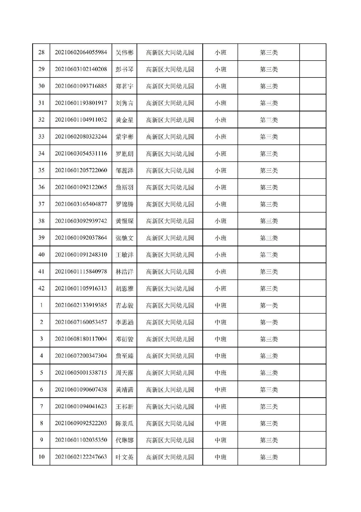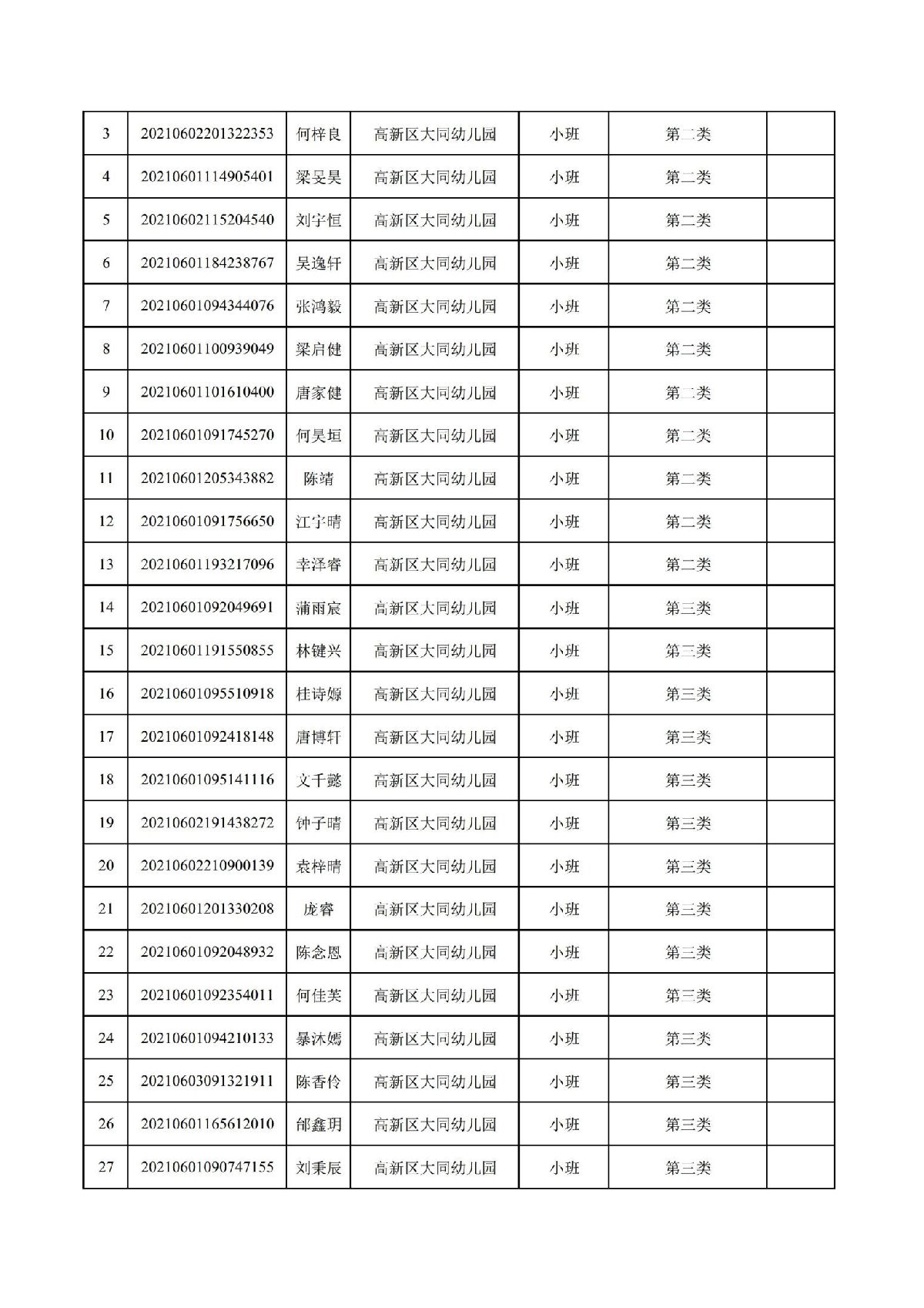 珠海高新区大同幼儿园2021年招生符合报读资格名单