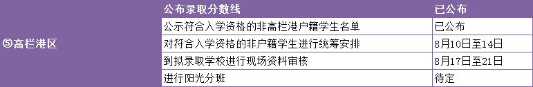 根据市教育局《 关于做好2020年普通中小学招生入学工作的通知》(珠教基信﹝2020﹞2号)和《高栏港经济区2020年秋季义务教育阶段学校招生工作细则》,高栏港区2020年中小学秋季义务教育阶段经报名、审核、积分复核,根据学位安排和排序,今年小学一年级最低录取分数线定为60分,达到最低录取分数线而未被报读学校录取的学生,将就近调剂到有学位的学校。初中七年级因学位基本能满足报读人数,可不设最低录取分数线,按招生细则规定的原则和积分情况调剂录取。