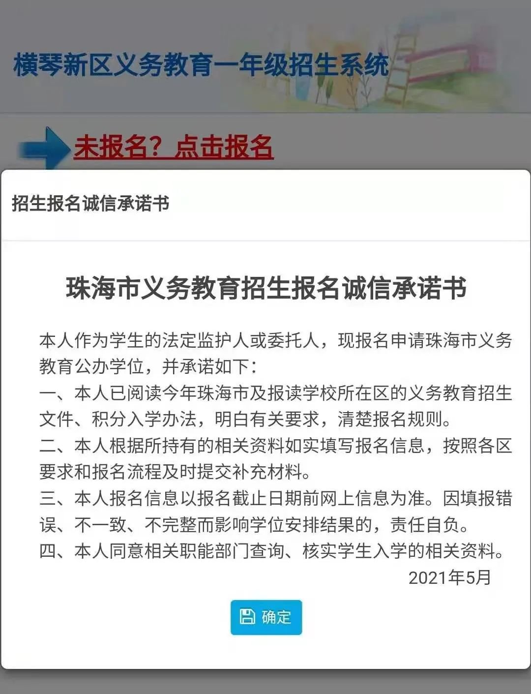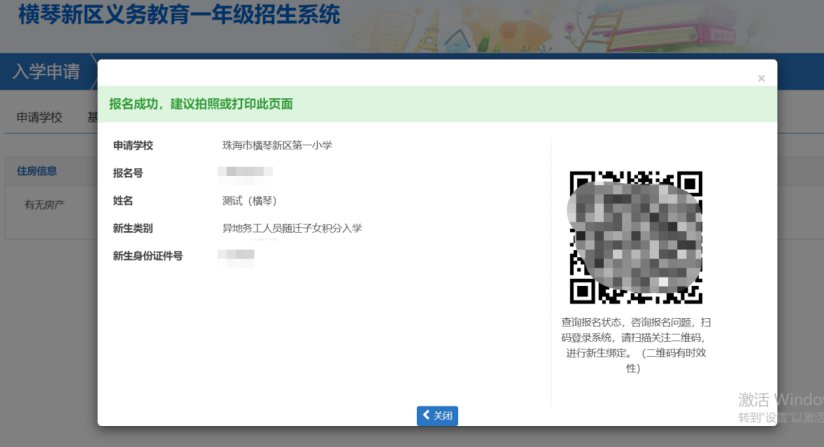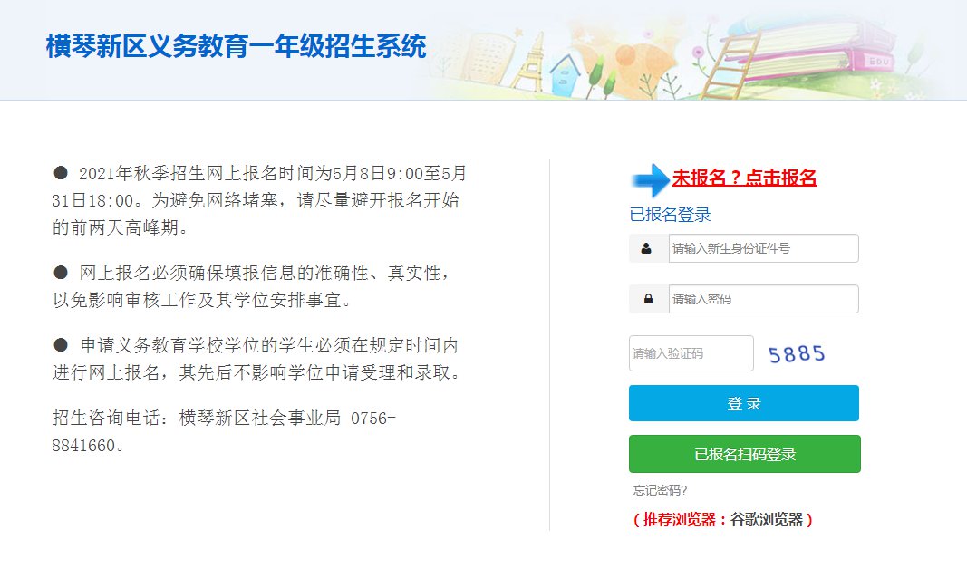 (以横琴新区小一为例,香洲区和高新区以实际报名页面为准)
