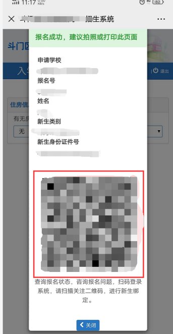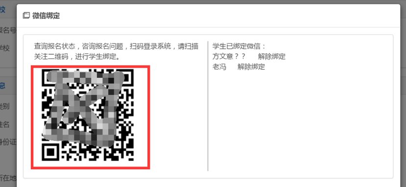 家长报名成功后会弹出二维码,家长用微信扫描后即可绑定学生信息。