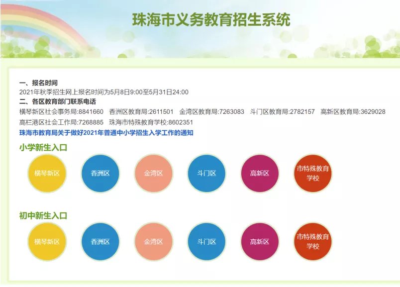 2021珠海公办中小学入学报名系统操作指引(附流程图)