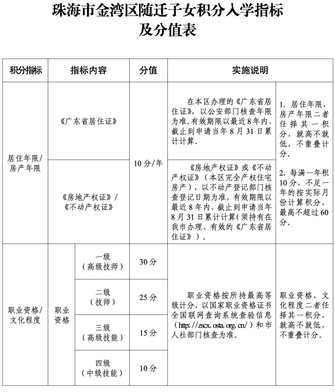 附件7.珠海市金湾区随迁子女积分入学指标及分值表