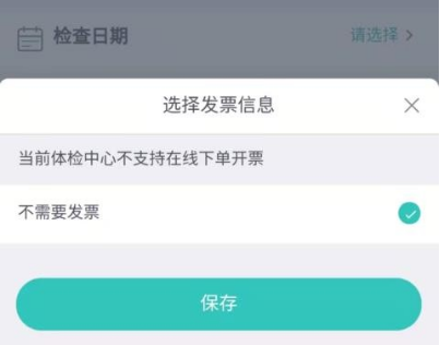 5. 准确填写个人信息并选择体检时间,同时选择是否需要开票,若无需开票,则可直接点击微信支付,在线完成付款并成功预约。