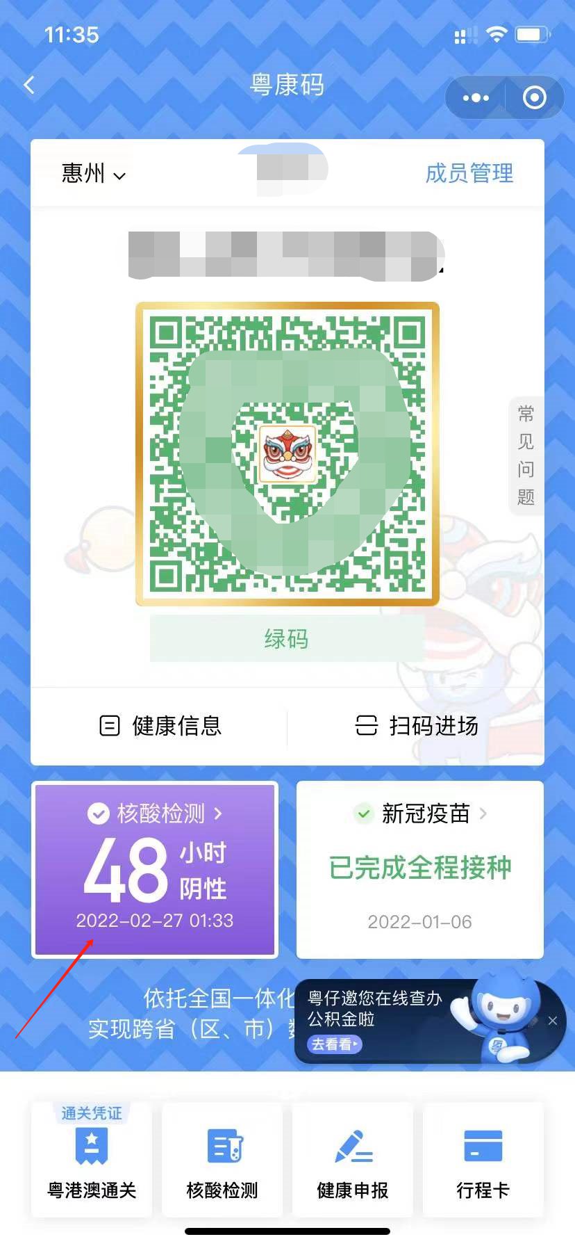 查询方式:进入粤省事小程序—粤康码—点击左下角即可查看核酸证明