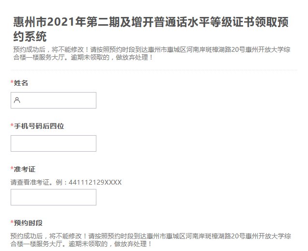 惠州2021第二期及增开普通话证领取预约说明(附入口)