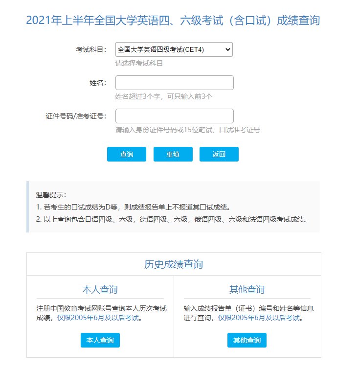 2021年上半年全国大学英语四、六级考试(CET)成绩将于8月26日发布: