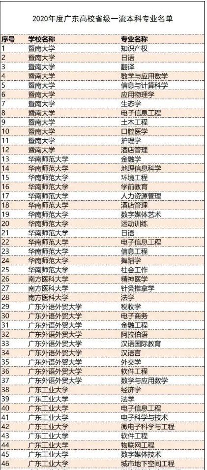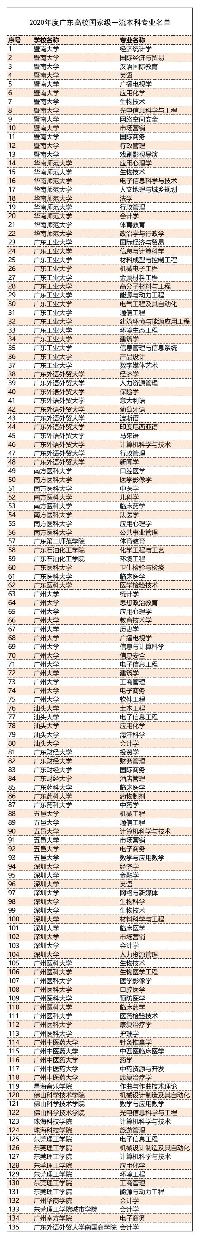 广东高校2020年度一流本科专业名单出炉