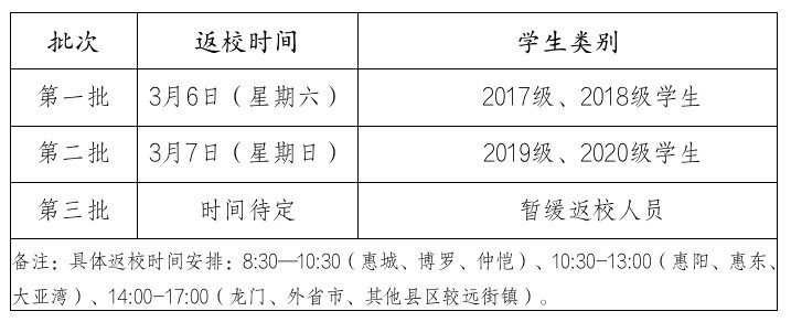 3月6-7日,学生分批返校,3月8日(周一)起正式上课。