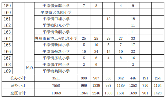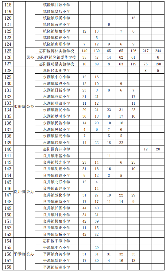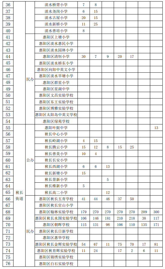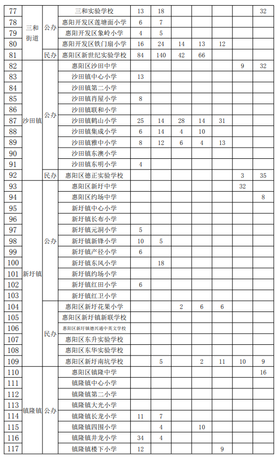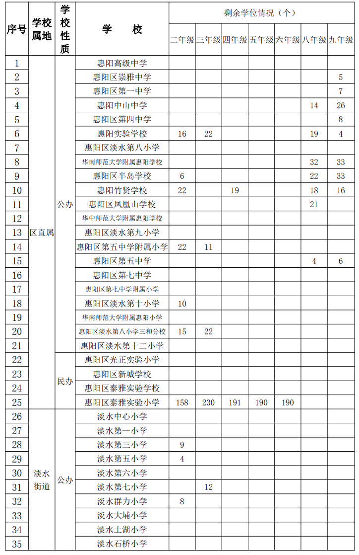 惠阳区义务教育学校2022年秋季学期可受理转学申请空余学位一览表