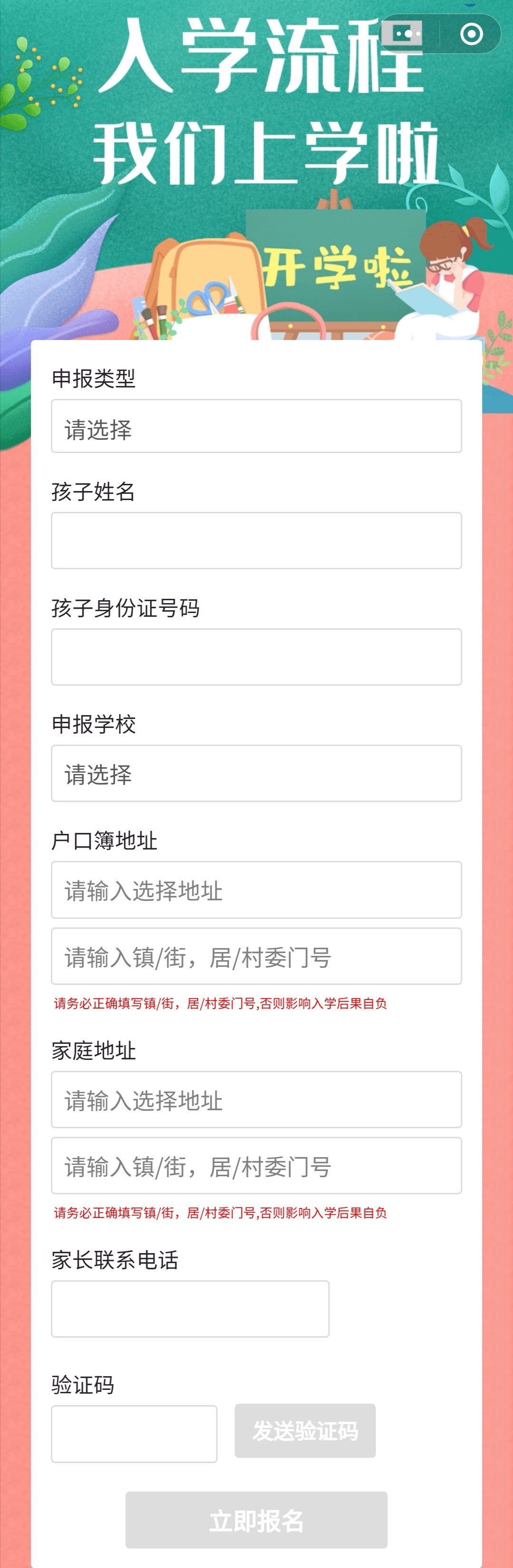 1、进入申报小程序(小程序未上线,27日开始上线),点击“入学报名入口”即可到申报界面。