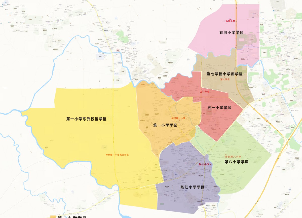 1.第一小学学区:招收本学区的仲恺户籍适龄儿童,剩余学位用于积分入学。学区内的非仲恺户籍适龄儿童申请积分入学由家长自主选择第一小学或第一小学东升校区其中一所学校进行申请。根据往年招生情况,第一小学剩余学位较少,家长应根据自身条件慎重选择。