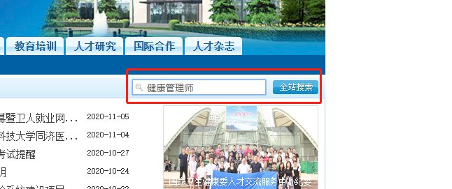 第一步:进入“中国卫生人才网官网”(https://www.21wecan.com/),直接搜索“健康管理师”,进入第二页,点击第一个“健康管理师”