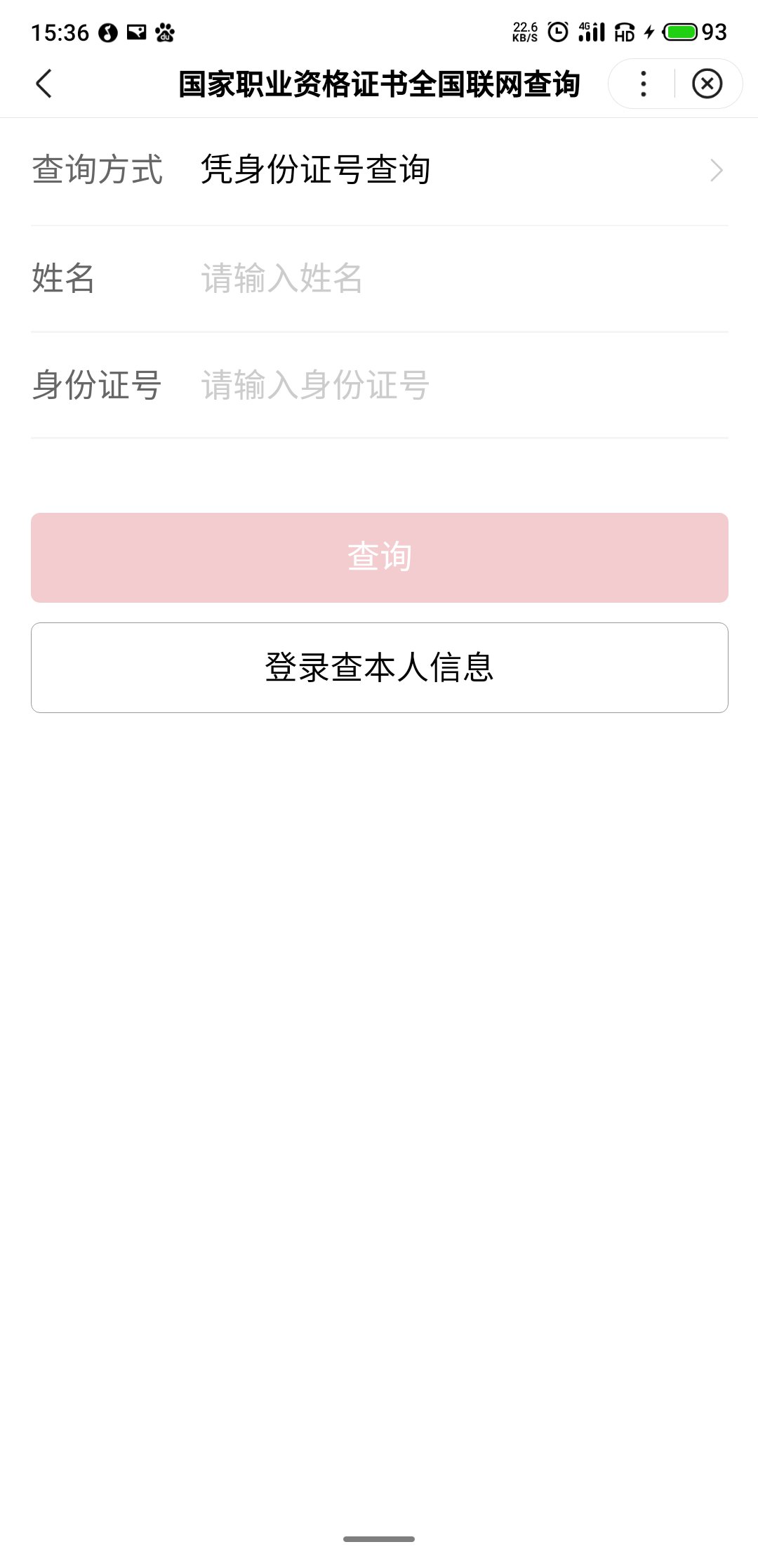 第三步:然后选择查询入口,输入姓名、身份证号或者是证书编号,然后进行查询