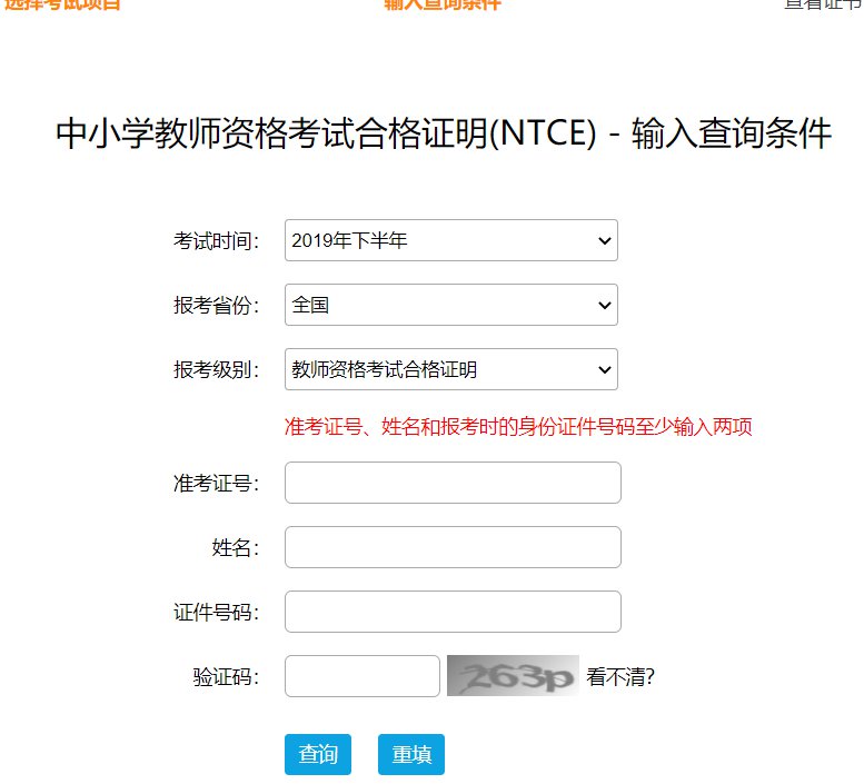 2、输入准考证号、姓名和报考时的身份证件号码(至少输入两项,证件号码区分大小写),点击查询按钮进行查询。