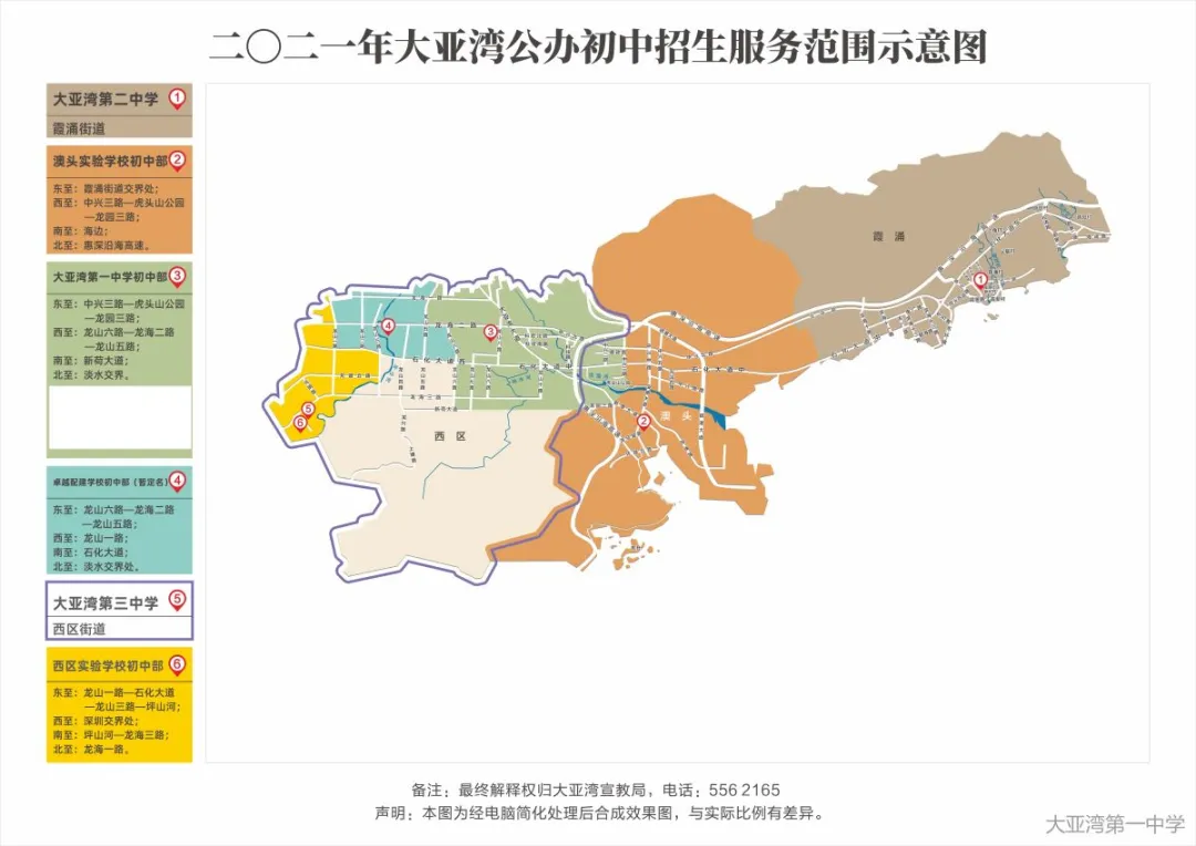 大亚湾第一中学初中部学区范围:
