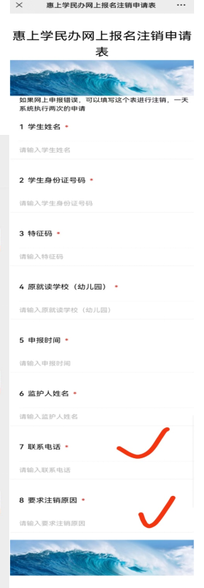 需要注销重新申报的家长,请按以下格式发送信息至惠上学公众号。