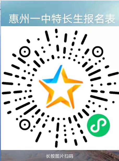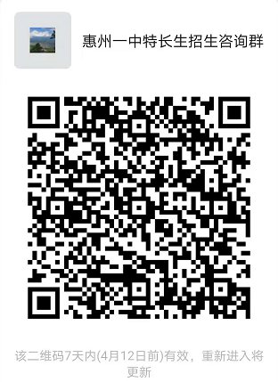 1.4月6日—26日,考生可通过我校微信平台报名或扫描以下二维码。考生必须真实填写信息,发现与信息不符的取消考试资格。为了便于接受后续通知,请关注惠州一中微信公众号。